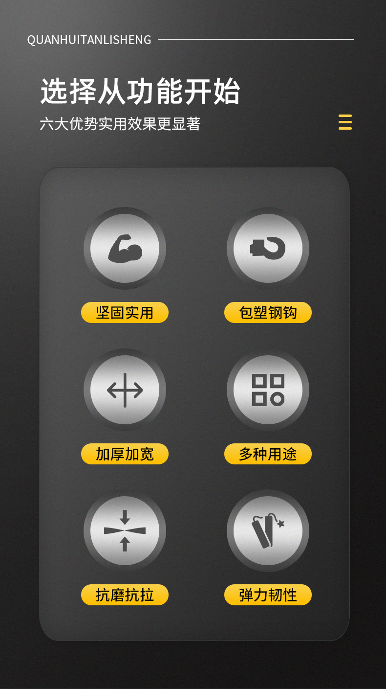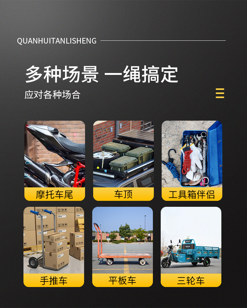 Cross-border Quanhui 5 パックラテックス弾性ロープフラット 15 ミリメートルオートバイストラップ高弾性と耐久性のあるストラップダブルフック