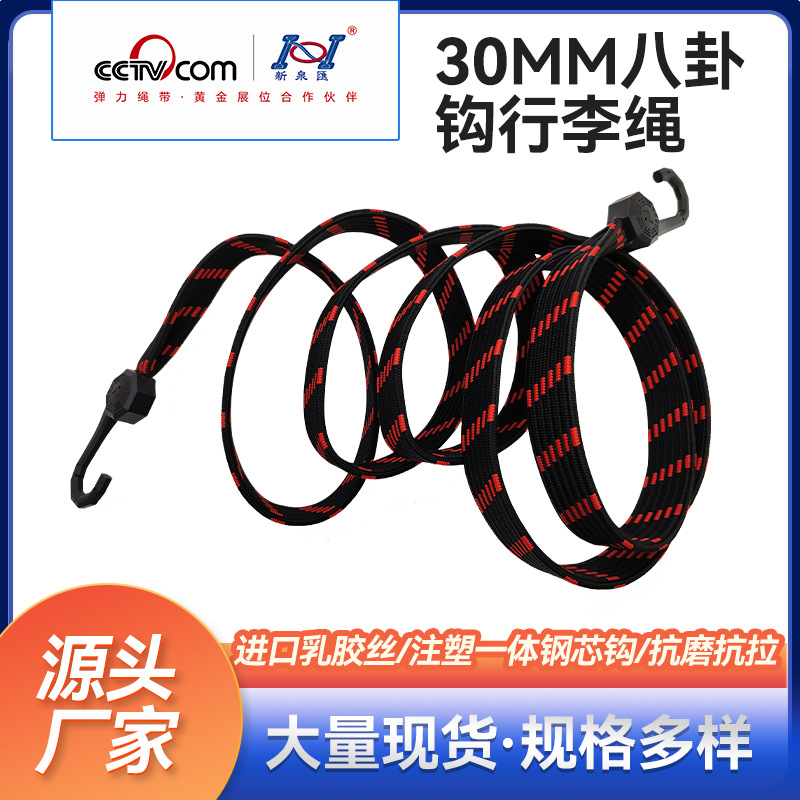 30mm * 1.6メートルフラットラテックス弾性ロープ射出成形鋼芯フッククロスボーダーダブルフック緩めスーツケース弾性ストラップ