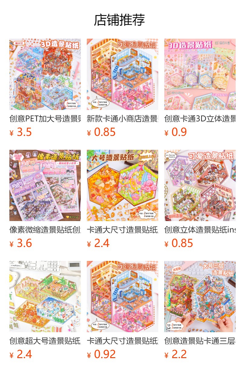新型アニメ小商店造景シール3D立体手帳シールかわいいミニチュアシーン装飾シール卸売り