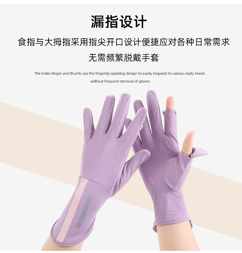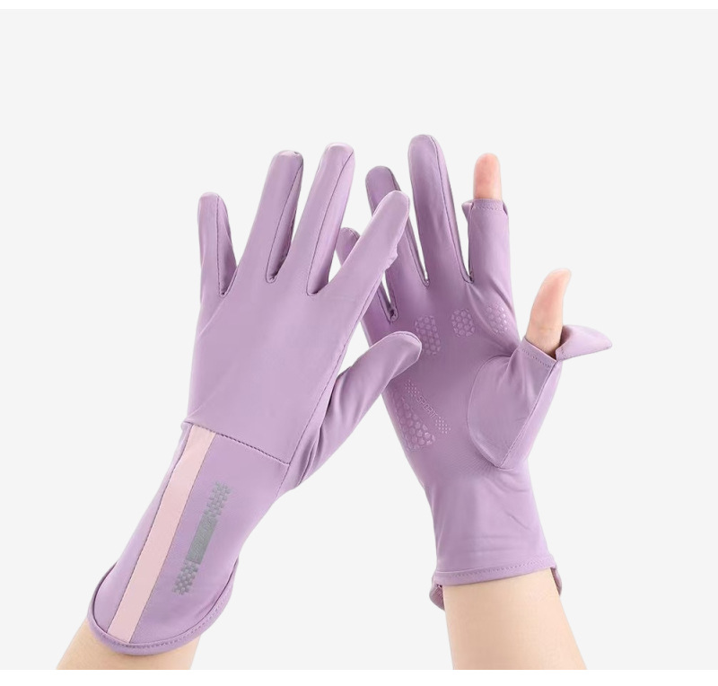 日焼け止めアイスシルク手袋 女性用 指穴あき 薄手 夏用 滑り止め 通気性 タッチスクリーン対応 運転用 アウトドア用 紫外線対策