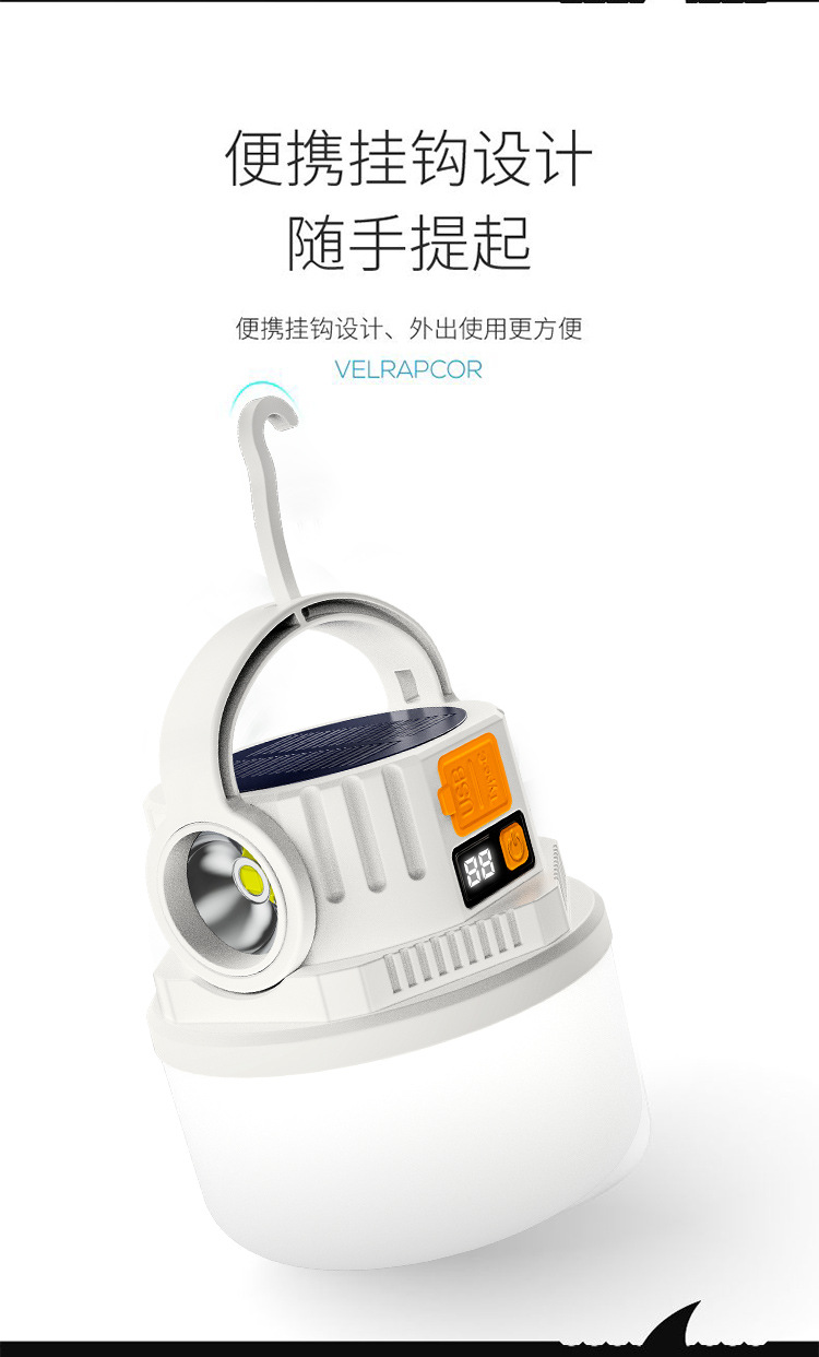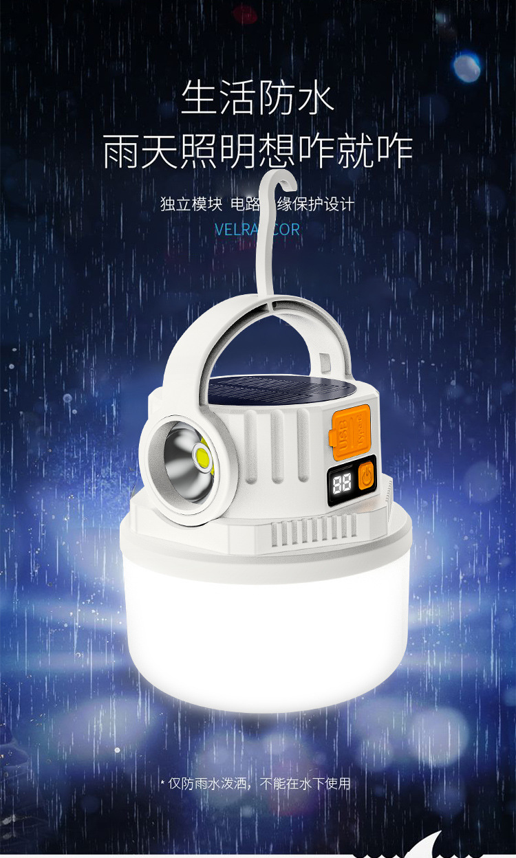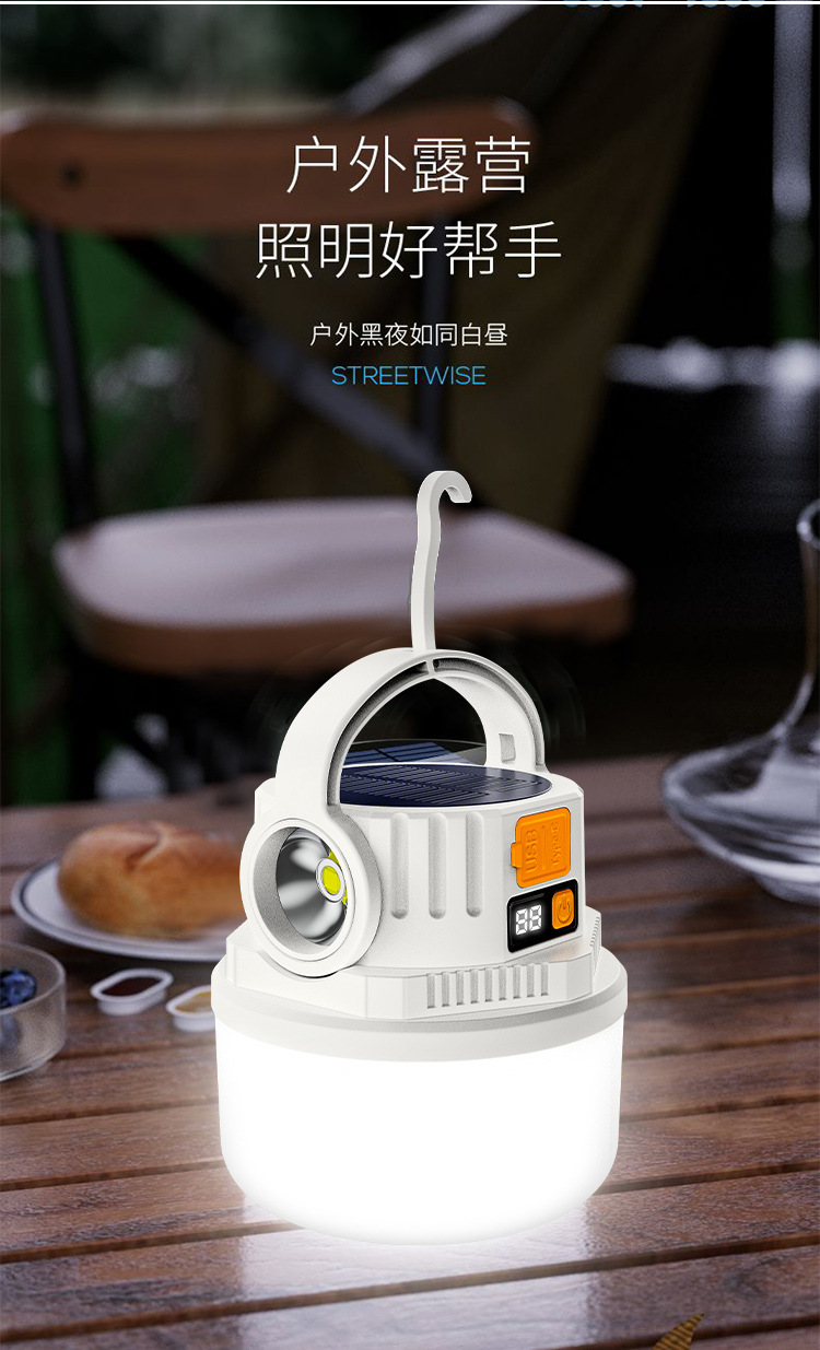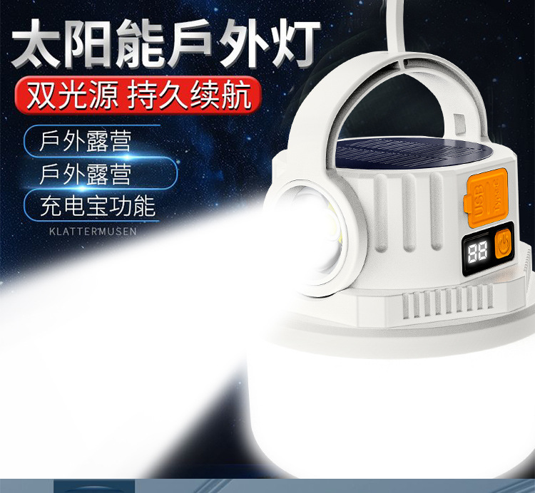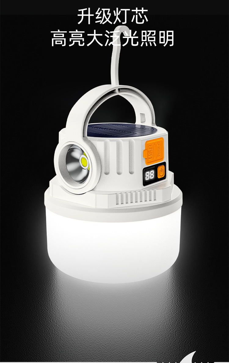 ダブル光源キャンプライト緊急屋外LED太陽エネルギーキャンプライトデジタル電気ディスプレイ充電式キャンプ場露店ライト