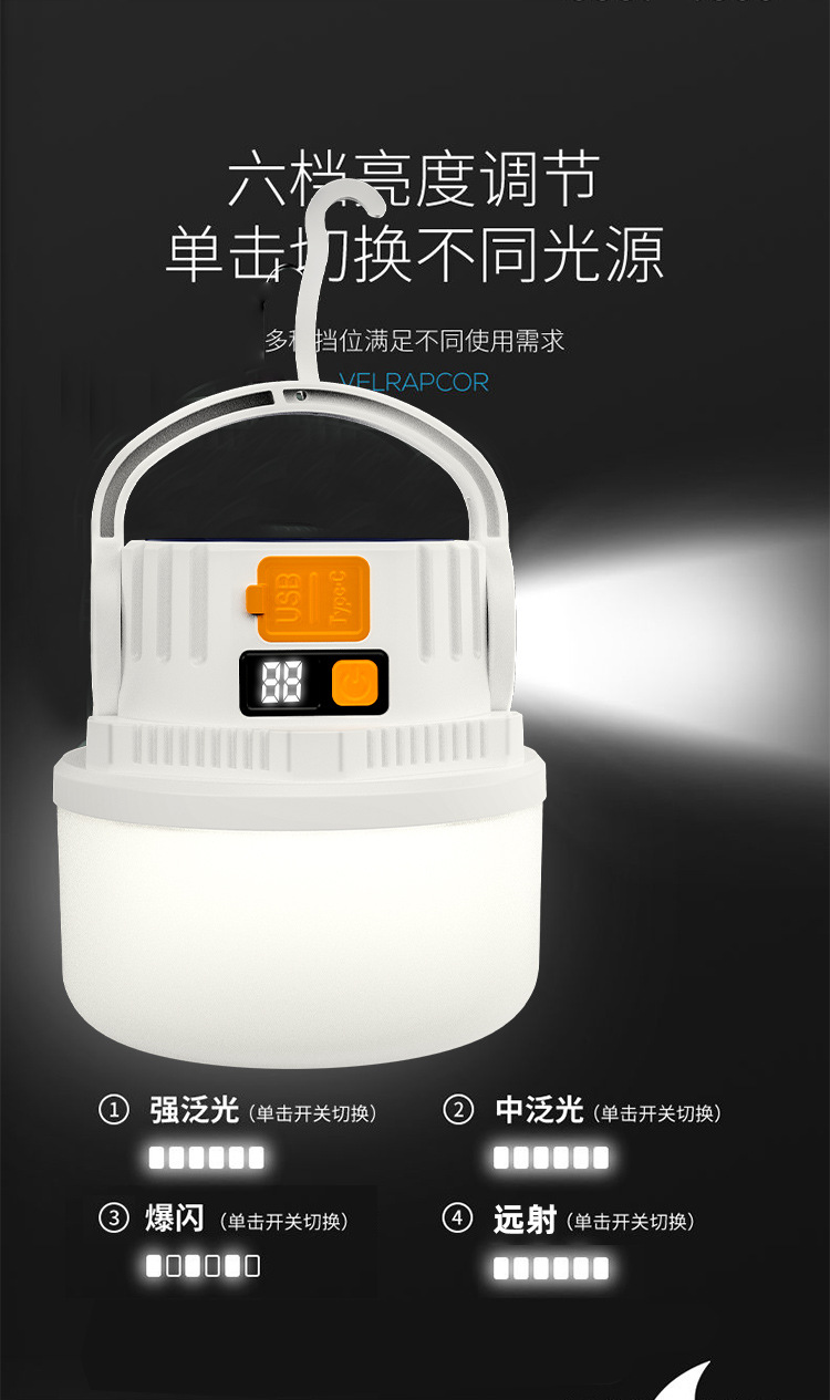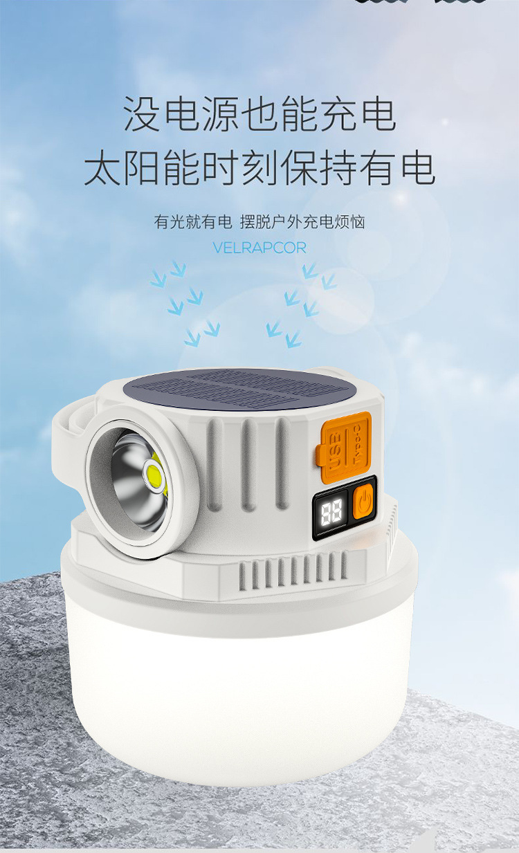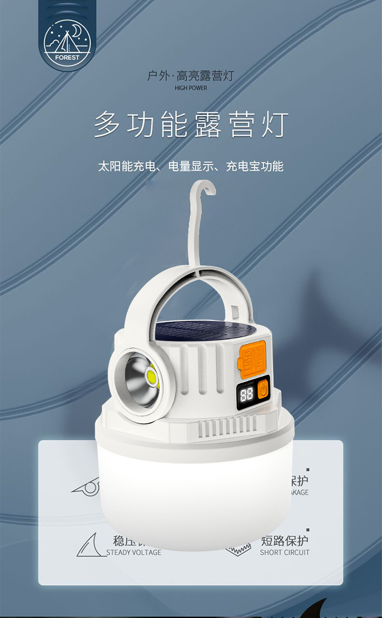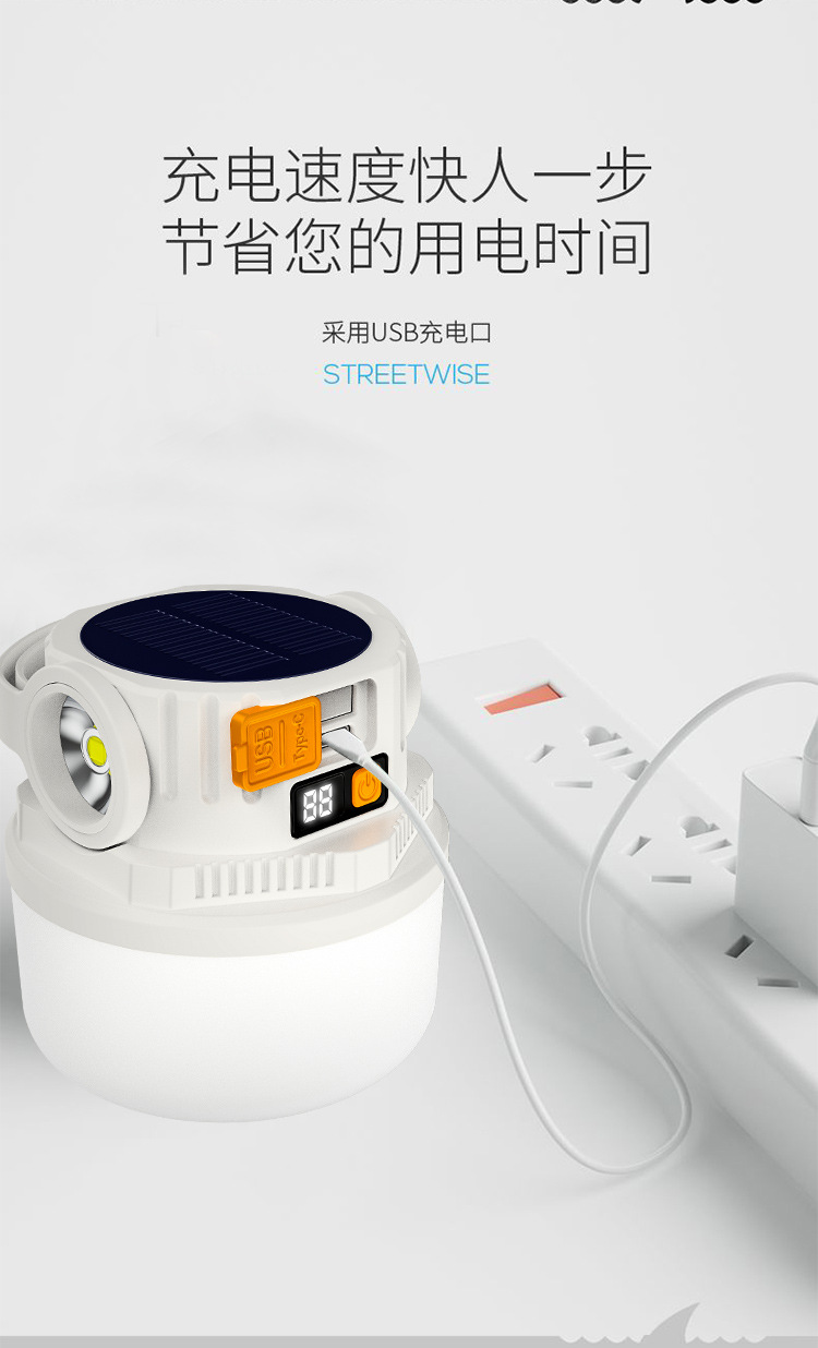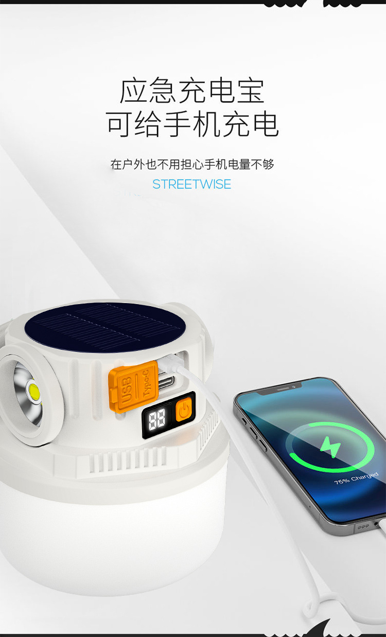 ダブル光源キャンプライト緊急屋外LED太陽エネルギーキャンプライトデジタル電気ディスプレイ充電式キャンプ場露店ライト