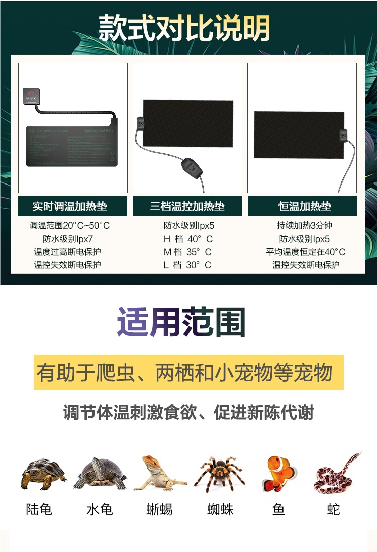 ペット温度制御加熱パッド、爬虫類、角ヒキガエル、ヘビ飼育箱、加熱温度制御、加熱ベタ水槽断熱材