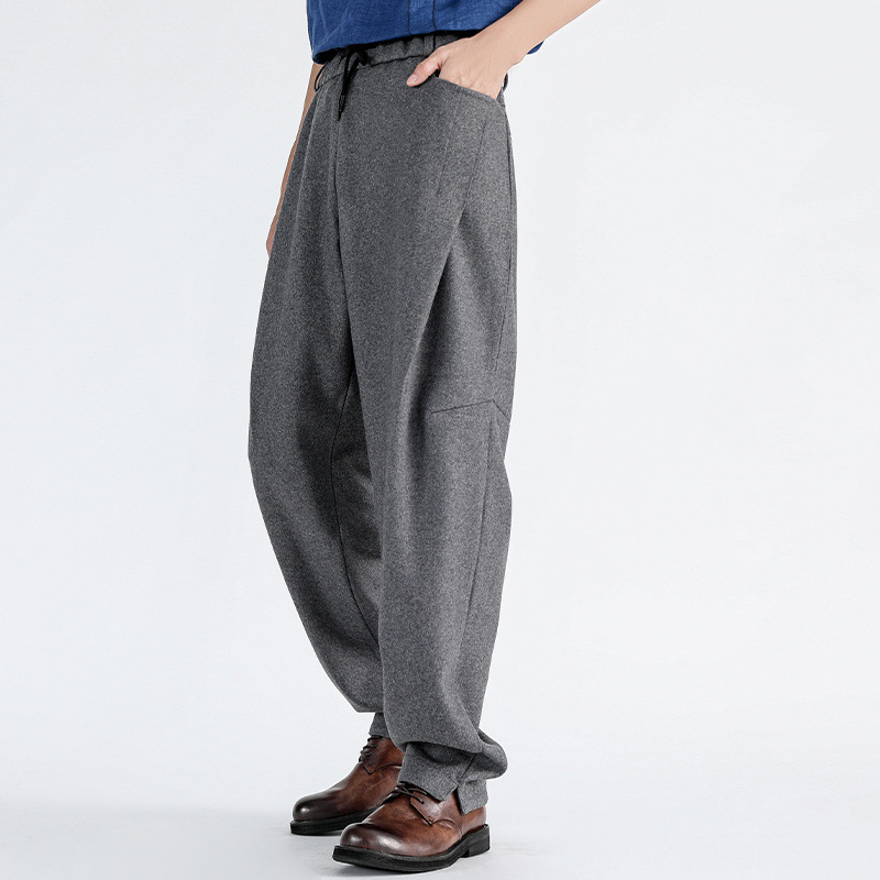 秋冬ウールパンツメンズハーレムパンツルーズカジュアル小脚パンツドレープ暖かい大きいサイズワイドレッグメンズパンツ