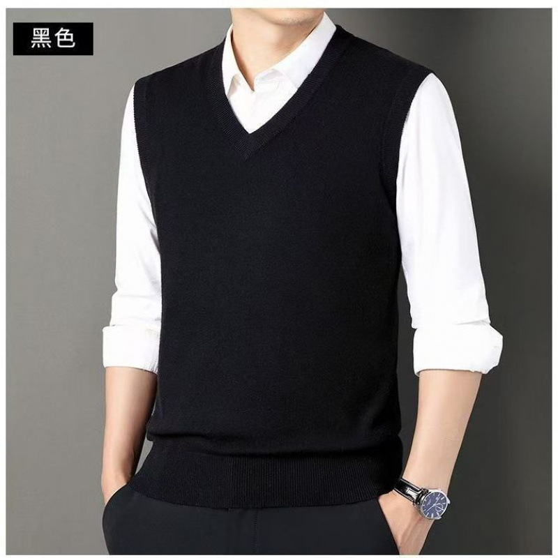秋と冬のメンズセーターベスト、中年男性用ベスト、プルオーバーチョッキ、ノースリーブセーター、メンズカラーセーター