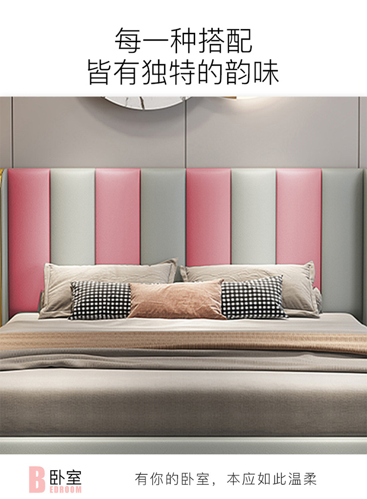 榻榻米床头软包防撞靠背儿童房窗花墙围墙垫防水防潮床围墙纸