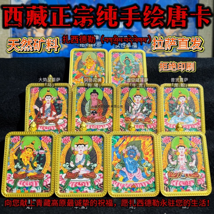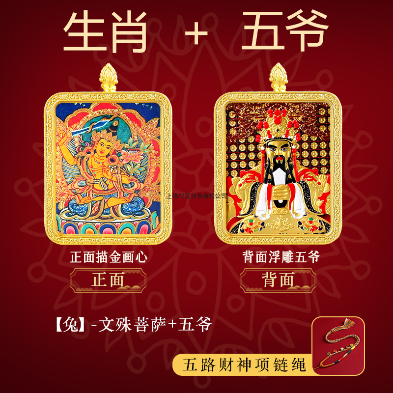 五台山唐カペンダント、五台山文殊菩薩、普賢干支、本命仏、チベット両面手描き仏陀ネックレス
