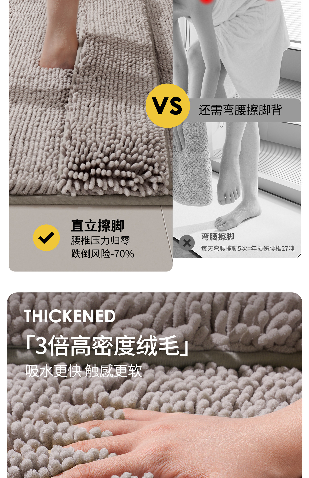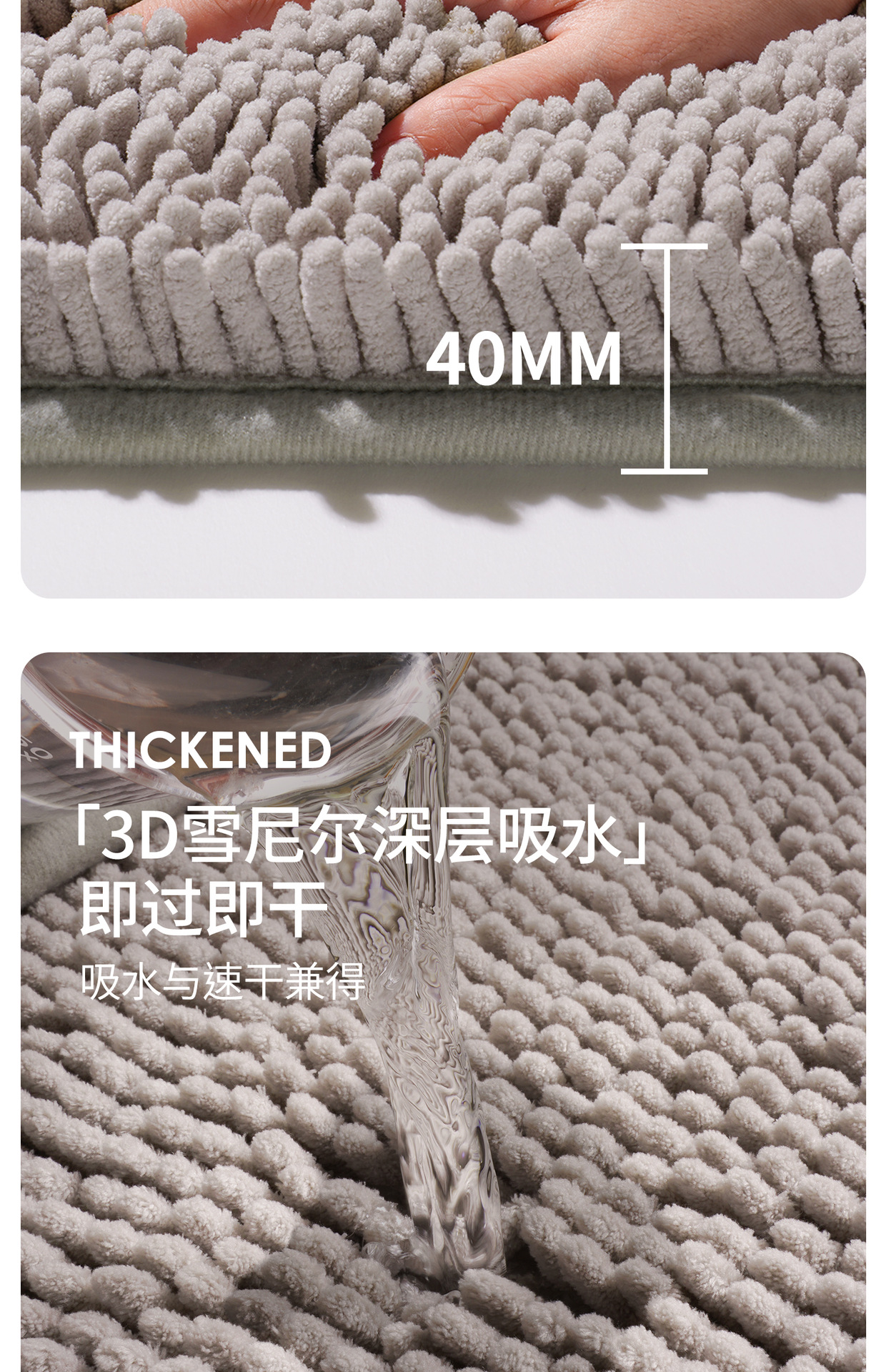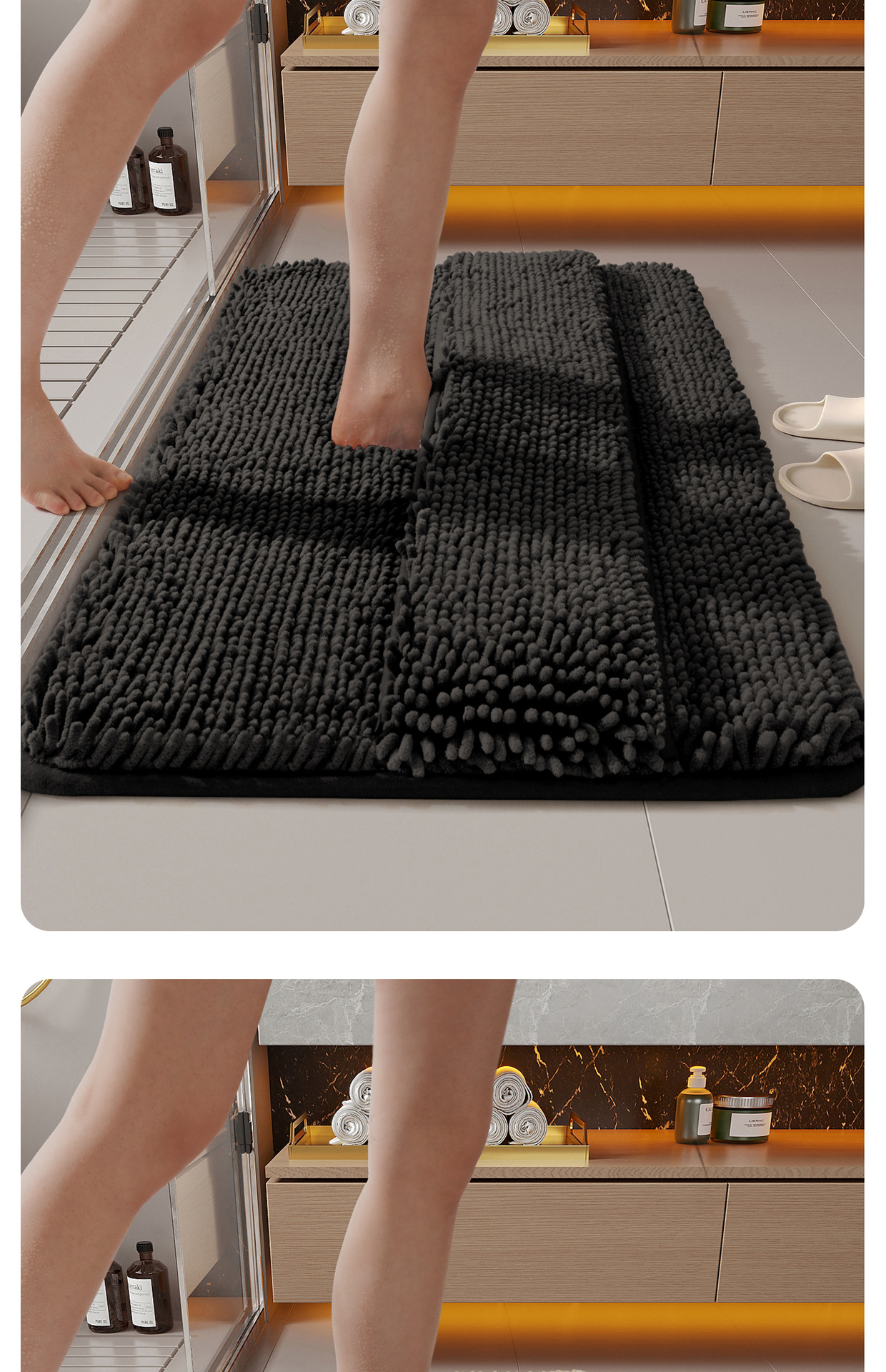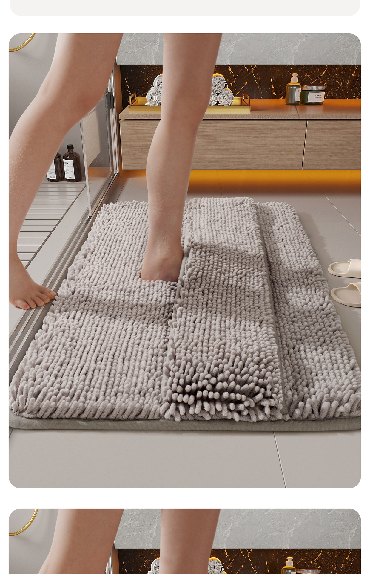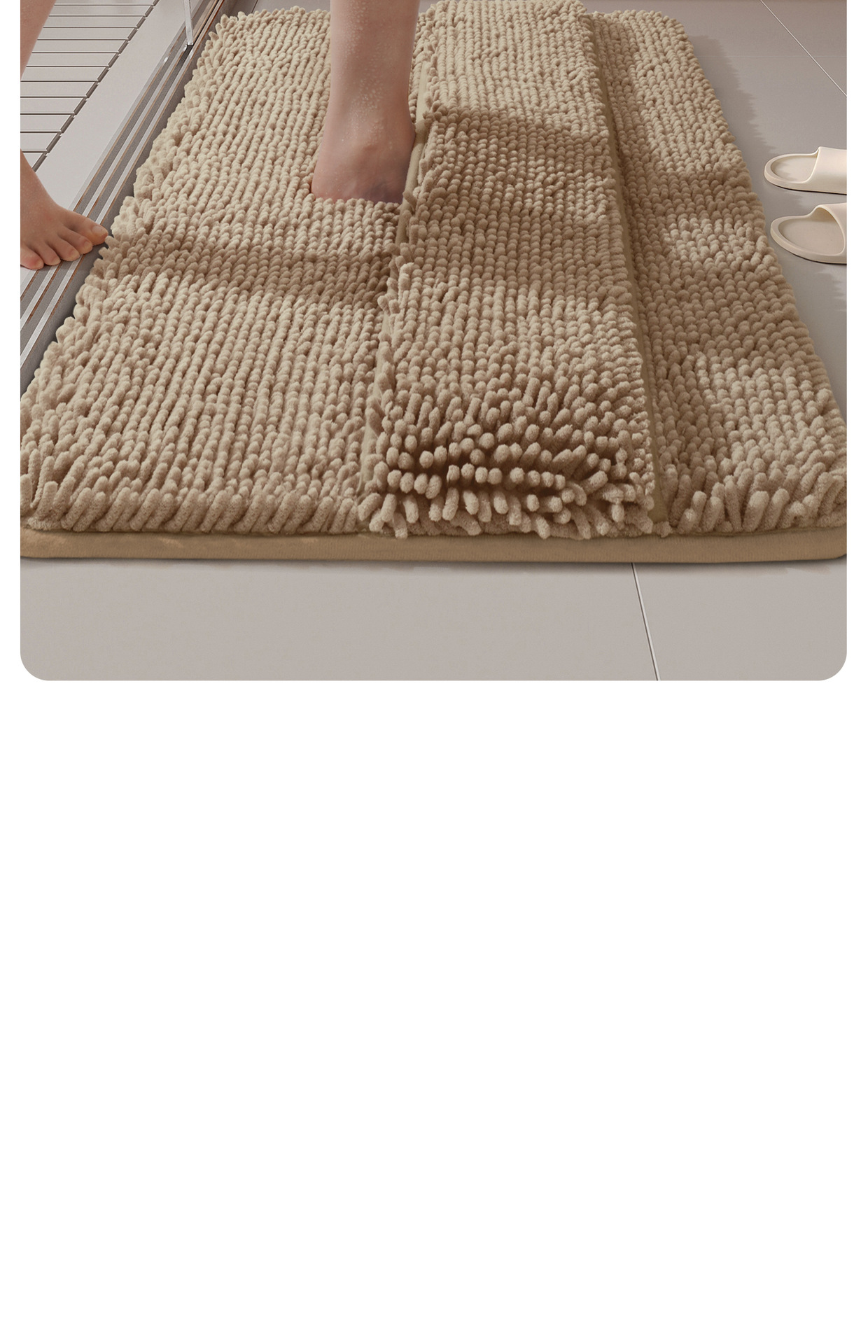 シェニール バス マット - バック付きアップグレード ミニマリスト ライトグレー,シェニール バス マット - アップグレードされたミニマリスト ベージュ バック付き,シェニール バス マット - バック付きアップグレード ミニマリスト ダークグレー