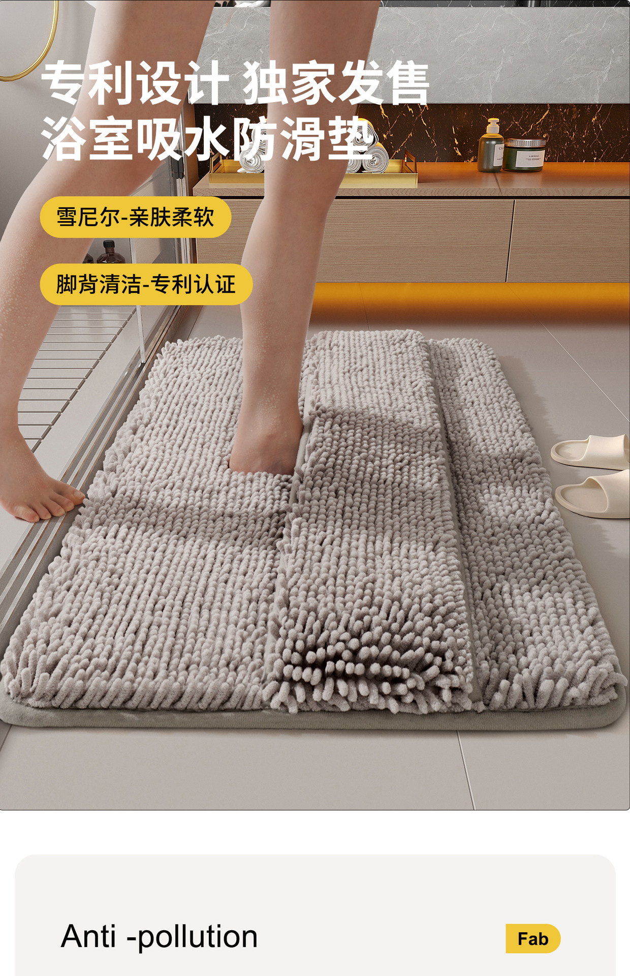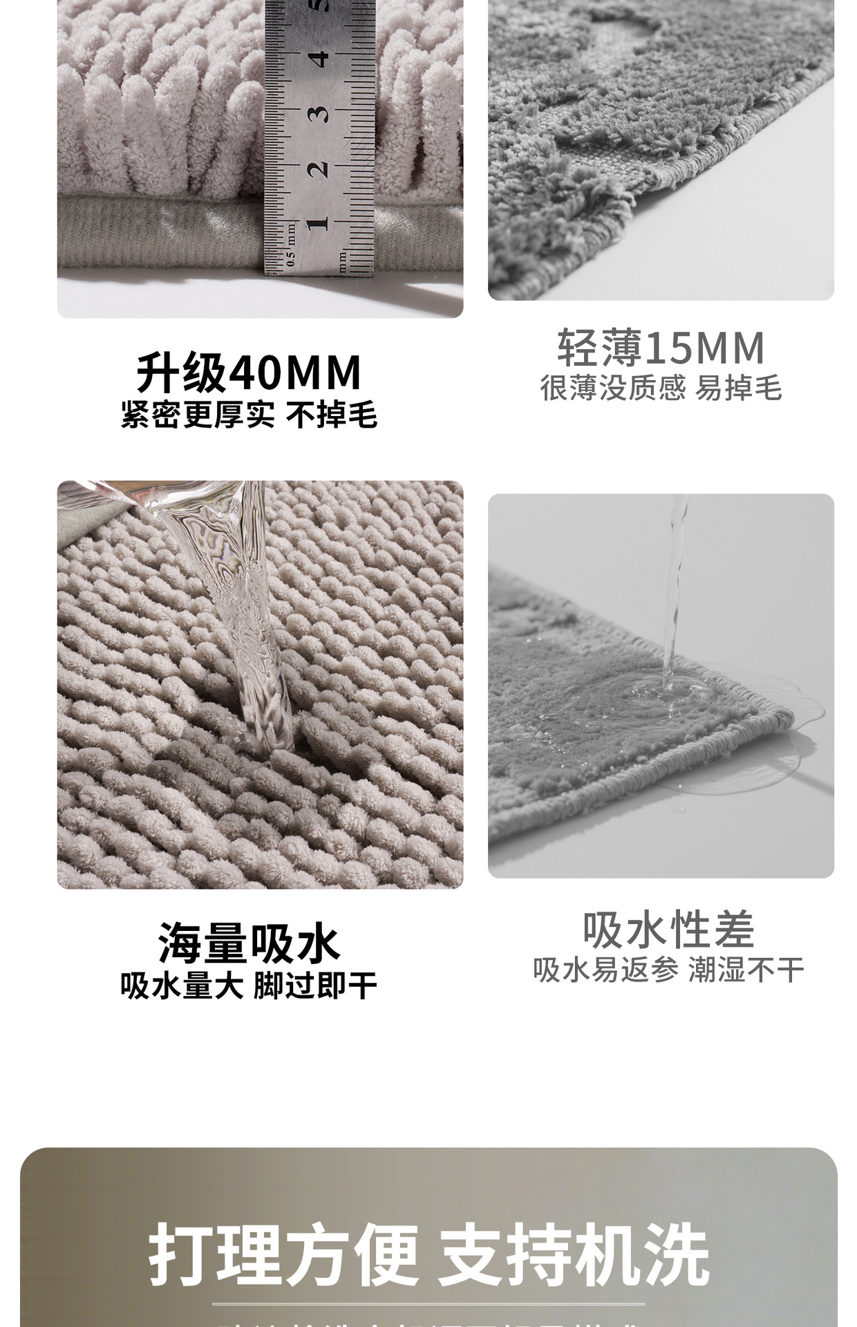 吸水浴室マット滑り止めフロアマットシャワー入浴防止汚れ防止トイレシェニール速乾カーペットマット