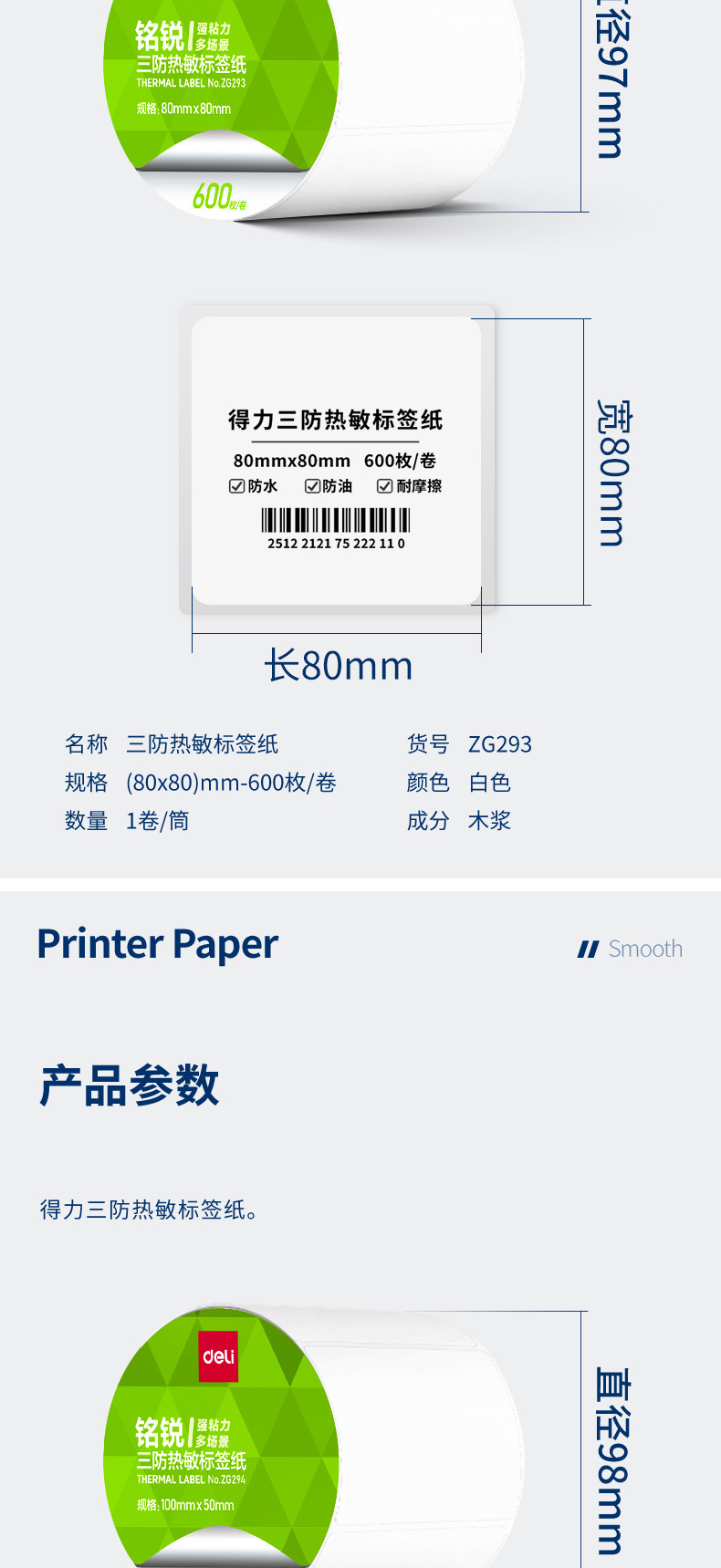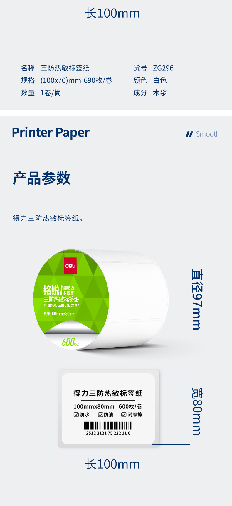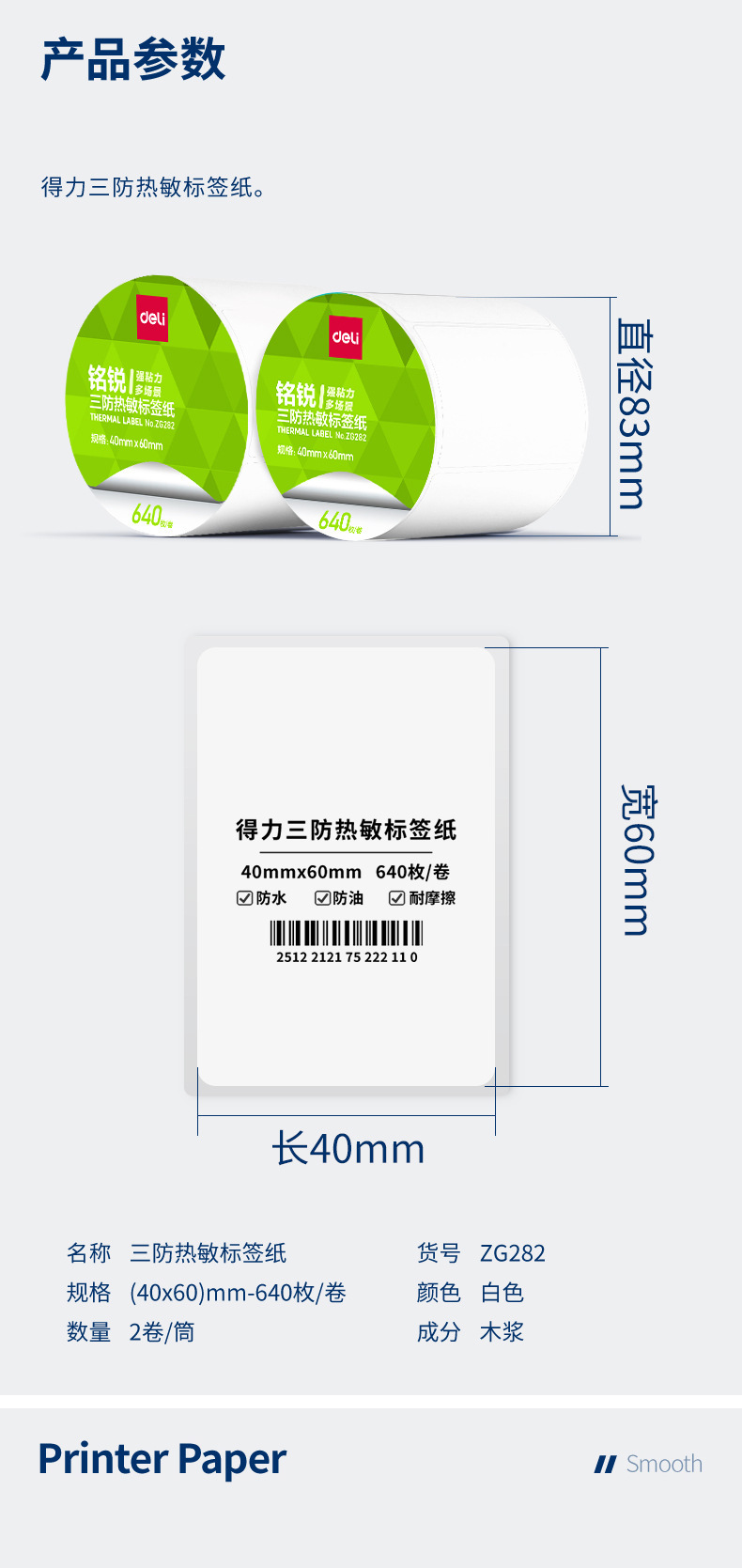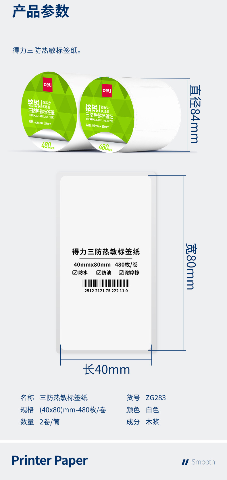 デリ ZG279 Mingrui 70*20mm-1800 枚 (白) (1 ロール/チューブ) 三耐サーマルラベル用紙 (全体で 48 チューブをお求めください),デリ ZG280 明瑞 30*20mm-7200枚(白)(4ロール/チューブ)三耐感熱ラベル紙(全体に24チューブお取りください),デリ ZG281 明瑞 40*30mm-4000枚(白)(5ロール/チューブ)三耐感熱ラベル紙(全体に20チューブお取りください),デリ ZG282 明瑞 40×60mm-1280枚(白)(2ロール/チューブ)三耐感熱ラベル紙(全体で36チューブお取りください),デリ ZG283 明瑞 40×80mm-960枚(白)(2ロール/チューブ)三耐感熱ラベル紙(全体で36チューブお取りください),デリ ZG284 明瑞 50×30mm-2500枚(白)(2ロール/チューブ)三耐感熱ラベル紙(全体に24チューブお取りください),デリ ZG285 明瑞 50×40mm-1900枚(白)(2ロール/チューブ)三耐感熱ラベル紙(全体に24チューブお取りください),デリ ZG286 明瑞 60×40mm-1600枚(白)(2ロール/チューブ)三耐感熱ラベル紙(全体で24筒お取りください),デリ ZG287 明瑞 60×40mm-1900枚(白)(2ロール/チューブ)三耐感熱ラベル紙(全体で24チューブお取りください),デリ ZG288 明瑞 70*40mm-1900枚(白)(2ロール/チューブ)三耐感熱ラベル紙(全体に18チューブお取りください),デリ ZG289 明瑞 70×50mm-1500枚(白)(2ロール/チューブ)三耐感熱ラベル紙(全体に18チューブお取りください),デリ ZG290 明瑞 80×40mm-1180枚(白)(1ロール/チューブ)三耐感熱ラベル紙(全体で36チューブお取りください),デリ ZG291 明瑞 80×50mm-960枚(白)(1ロール/チューブ)三耐感熱ラベル紙(全体で36チューブお取りください),デリ ZG292 明瑞 80×60mm-800枚(白)(1ロール/チューブ)三耐感熱ラベル紙(全体で36チューブお取りください),デリ ZG293 明瑞 80×80mm-600枚(白)(1ロール/チューブ)三耐感熱ラベル紙(全体に36チューブお取りください),デリ ZG294 明瑞 100*50mm-960枚(白)(1ロール/チューブ)三耐感熱ラベル紙(全体に24チューブお取りください),デリ ZG295 明瑞 100*60mm-800枚(白)(1ロール/チューブ)三耐感熱ラベル紙(全体に24チューブお取りください),デリ ZG296 明瑞 100*70mm-690枚(白)(1ロール/チューブ)三耐感熱ラベル紙(全体に24チューブお取りください),デリ ZG297 明瑞 100×80mm-600枚(白)(1ロール/チューブ)三耐感熱ラベル紙(全体に24チューブお取りください),デリ ZG298 明瑞 100*100mm-500枚(白)(1ロール/チューブ)三耐感熱ラベル紙(全体に24チューブお取りください),デリ ZG299 明瑞 100*150mm-325 枚 (白) (1 ロール/チューブ) 三耐感熱ラベル紙 (全体に 24 チューブをお取りください)