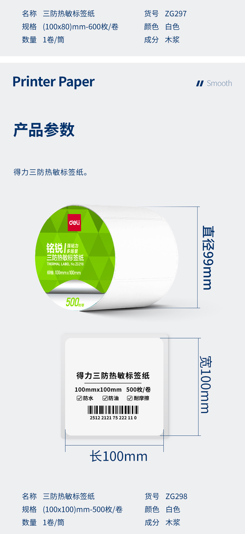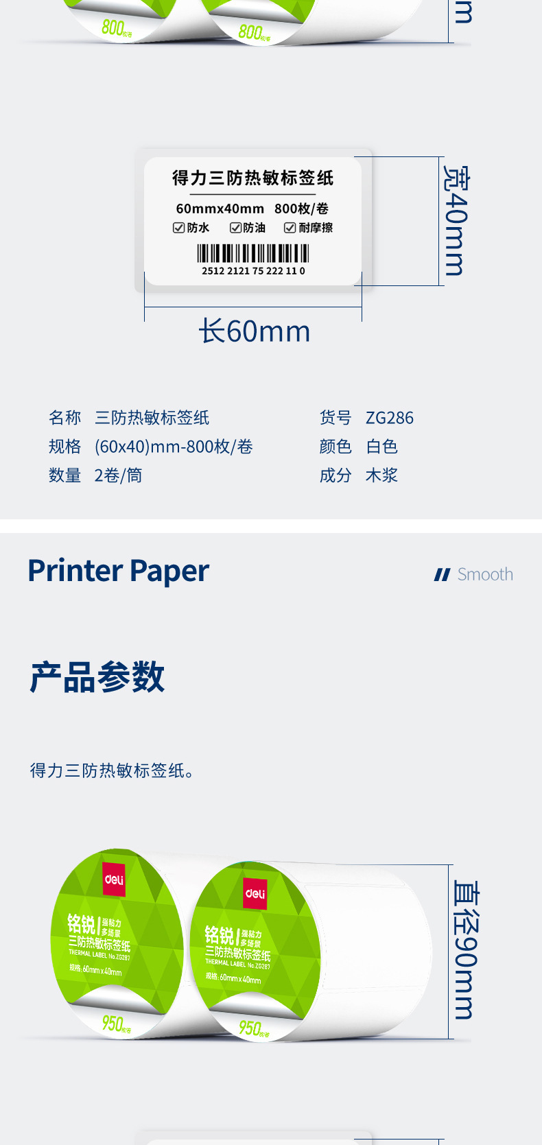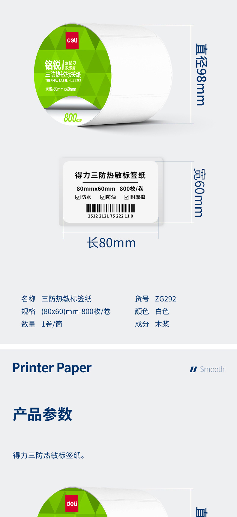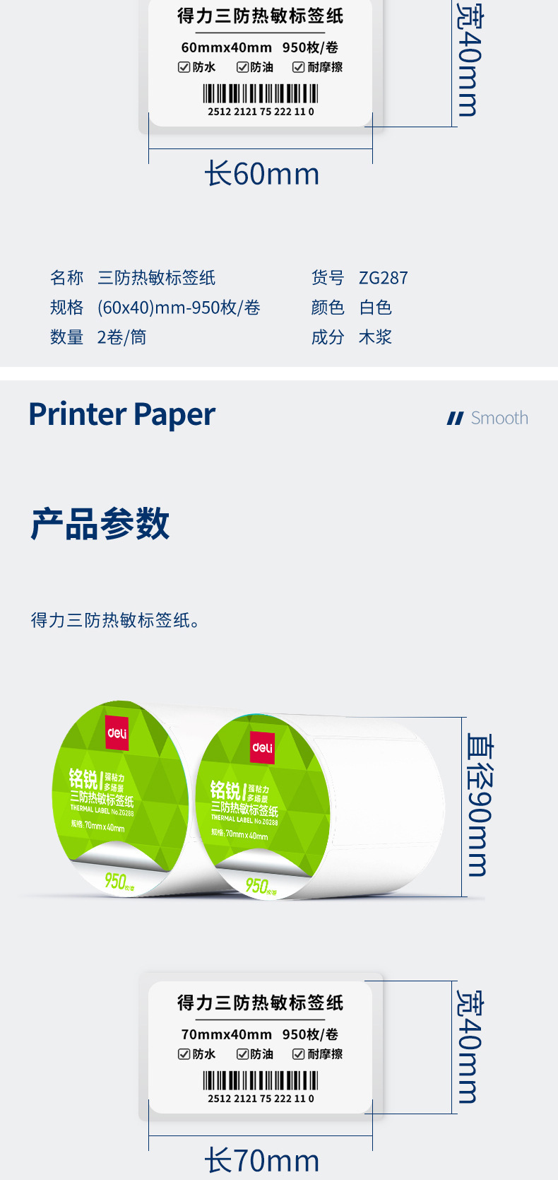 デリ ZG279 Mingrui 70*20mm-1800 枚 (白) (1 ロール/チューブ) 三耐サーマルラベル用紙 (全体で 48 チューブをお求めください),デリ ZG280 明瑞 30*20mm-7200枚(白)(4ロール/チューブ)三耐感熱ラベル紙(全体に24チューブお取りください),デリ ZG281 明瑞 40*30mm-4000枚(白)(5ロール/チューブ)三耐感熱ラベル紙(全体に20チューブお取りください),デリ ZG282 明瑞 40×60mm-1280枚(白)(2ロール/チューブ)三耐感熱ラベル紙(全体で36チューブお取りください),デリ ZG283 明瑞 40×80mm-960枚(白)(2ロール/チューブ)三耐感熱ラベル紙(全体で36チューブお取りください),デリ ZG284 明瑞 50×30mm-2500枚(白)(2ロール/チューブ)三耐感熱ラベル紙(全体に24チューブお取りください),デリ ZG285 明瑞 50×40mm-1900枚(白)(2ロール/チューブ)三耐感熱ラベル紙(全体に24チューブお取りください),デリ ZG286 明瑞 60×40mm-1600枚(白)(2ロール/チューブ)三耐感熱ラベル紙(全体で24筒お取りください),デリ ZG287 明瑞 60×40mm-1900枚(白)(2ロール/チューブ)三耐感熱ラベル紙(全体で24チューブお取りください),デリ ZG288 明瑞 70*40mm-1900枚(白)(2ロール/チューブ)三耐感熱ラベル紙(全体に18チューブお取りください),デリ ZG289 明瑞 70×50mm-1500枚(白)(2ロール/チューブ)三耐感熱ラベル紙(全体に18チューブお取りください),デリ ZG290 明瑞 80×40mm-1180枚(白)(1ロール/チューブ)三耐感熱ラベル紙(全体で36チューブお取りください),デリ ZG291 明瑞 80×50mm-960枚(白)(1ロール/チューブ)三耐感熱ラベル紙(全体で36チューブお取りください),デリ ZG292 明瑞 80×60mm-800枚(白)(1ロール/チューブ)三耐感熱ラベル紙(全体で36チューブお取りください),デリ ZG293 明瑞 80×80mm-600枚(白)(1ロール/チューブ)三耐感熱ラベル紙(全体に36チューブお取りください),デリ ZG294 明瑞 100*50mm-960枚(白)(1ロール/チューブ)三耐感熱ラベル紙(全体に24チューブお取りください),デリ ZG295 明瑞 100*60mm-800枚(白)(1ロール/チューブ)三耐感熱ラベル紙(全体に24チューブお取りください),デリ ZG296 明瑞 100*70mm-690枚(白)(1ロール/チューブ)三耐感熱ラベル紙(全体に24チューブお取りください),デリ ZG297 明瑞 100×80mm-600枚(白)(1ロール/チューブ)三耐感熱ラベル紙(全体に24チューブお取りください),デリ ZG298 明瑞 100*100mm-500枚(白)(1ロール/チューブ)三耐感熱ラベル紙(全体に24チューブお取りください),デリ ZG299 明瑞 100*150mm-325 枚 (白) (1 ロール/チューブ) 三耐感熱ラベル紙 (全体に 24 チューブをお取りください)