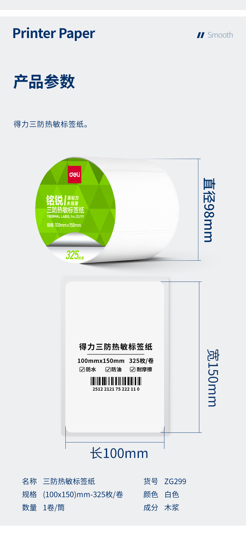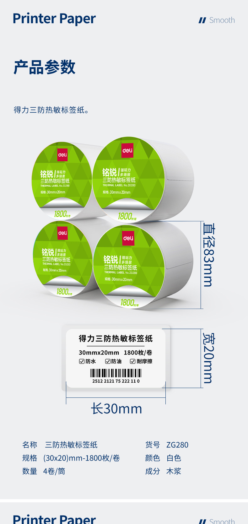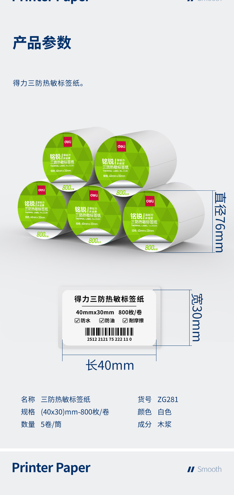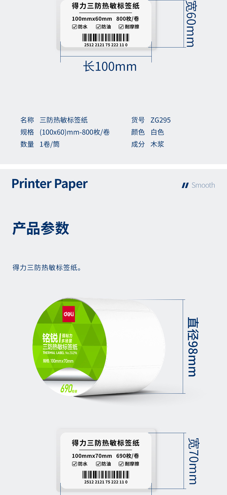 デリ ZG279 Mingrui 70*20mm-1800 枚 (白) (1 ロール/チューブ) 三耐サーマルラベル用紙 (全体で 48 チューブをお求めください),デリ ZG280 明瑞 30*20mm-7200枚(白)(4ロール/チューブ)三耐感熱ラベル紙(全体に24チューブお取りください),デリ ZG281 明瑞 40*30mm-4000枚(白)(5ロール/チューブ)三耐感熱ラベル紙(全体に20チューブお取りください),デリ ZG282 明瑞 40×60mm-1280枚(白)(2ロール/チューブ)三耐感熱ラベル紙(全体で36チューブお取りください),デリ ZG283 明瑞 40×80mm-960枚(白)(2ロール/チューブ)三耐感熱ラベル紙(全体で36チューブお取りください),デリ ZG284 明瑞 50×30mm-2500枚(白)(2ロール/チューブ)三耐感熱ラベル紙(全体に24チューブお取りください),デリ ZG285 明瑞 50×40mm-1900枚(白)(2ロール/チューブ)三耐感熱ラベル紙(全体に24チューブお取りください),デリ ZG286 明瑞 60×40mm-1600枚(白)(2ロール/チューブ)三耐感熱ラベル紙(全体で24筒お取りください),デリ ZG287 明瑞 60×40mm-1900枚(白)(2ロール/チューブ)三耐感熱ラベル紙(全体で24チューブお取りください),デリ ZG288 明瑞 70*40mm-1900枚(白)(2ロール/チューブ)三耐感熱ラベル紙(全体に18チューブお取りください),デリ ZG289 明瑞 70×50mm-1500枚(白)(2ロール/チューブ)三耐感熱ラベル紙(全体に18チューブお取りください),デリ ZG290 明瑞 80×40mm-1180枚(白)(1ロール/チューブ)三耐感熱ラベル紙(全体で36チューブお取りください),デリ ZG291 明瑞 80×50mm-960枚(白)(1ロール/チューブ)三耐感熱ラベル紙(全体で36チューブお取りください),デリ ZG292 明瑞 80×60mm-800枚(白)(1ロール/チューブ)三耐感熱ラベル紙(全体で36チューブお取りください),デリ ZG293 明瑞 80×80mm-600枚(白)(1ロール/チューブ)三耐感熱ラベル紙(全体に36チューブお取りください),デリ ZG294 明瑞 100*50mm-960枚(白)(1ロール/チューブ)三耐感熱ラベル紙(全体に24チューブお取りください),デリ ZG295 明瑞 100*60mm-800枚(白)(1ロール/チューブ)三耐感熱ラベル紙(全体に24チューブお取りください),デリ ZG296 明瑞 100*70mm-690枚(白)(1ロール/チューブ)三耐感熱ラベル紙(全体に24チューブお取りください),デリ ZG297 明瑞 100×80mm-600枚(白)(1ロール/チューブ)三耐感熱ラベル紙(全体に24チューブお取りください),デリ ZG298 明瑞 100*100mm-500枚(白)(1ロール/チューブ)三耐感熱ラベル紙(全体に24チューブお取りください),デリ ZG299 明瑞 100*150mm-325 枚 (白) (1 ロール/チューブ) 三耐感熱ラベル紙 (全体に 24 チューブをお取りください)