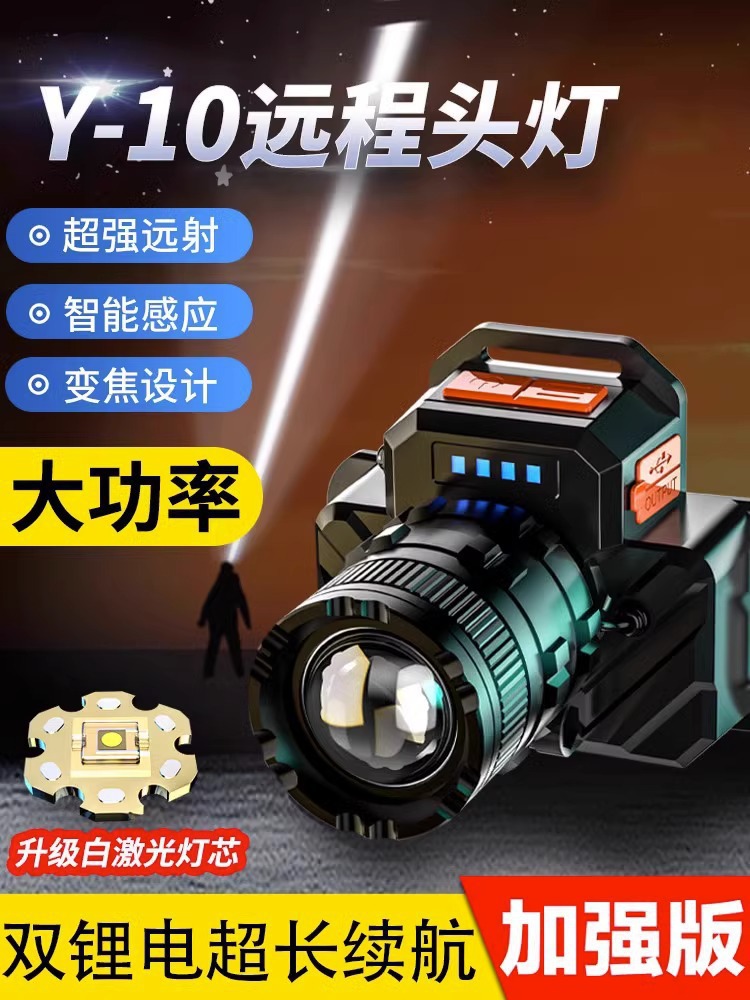 卸売クロスボーダーヘッドライトヘッドマウント強力な光充電超高輝度釣り特別なパワーバンク超長バッテリー寿命誘導ヘッドライト