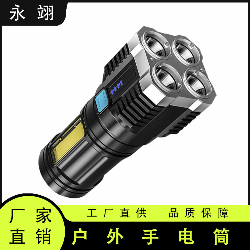 国境を越えた人気の LED 4 ライト高輝度懐中電灯屋外充電式特殊部隊照明多機能長距離