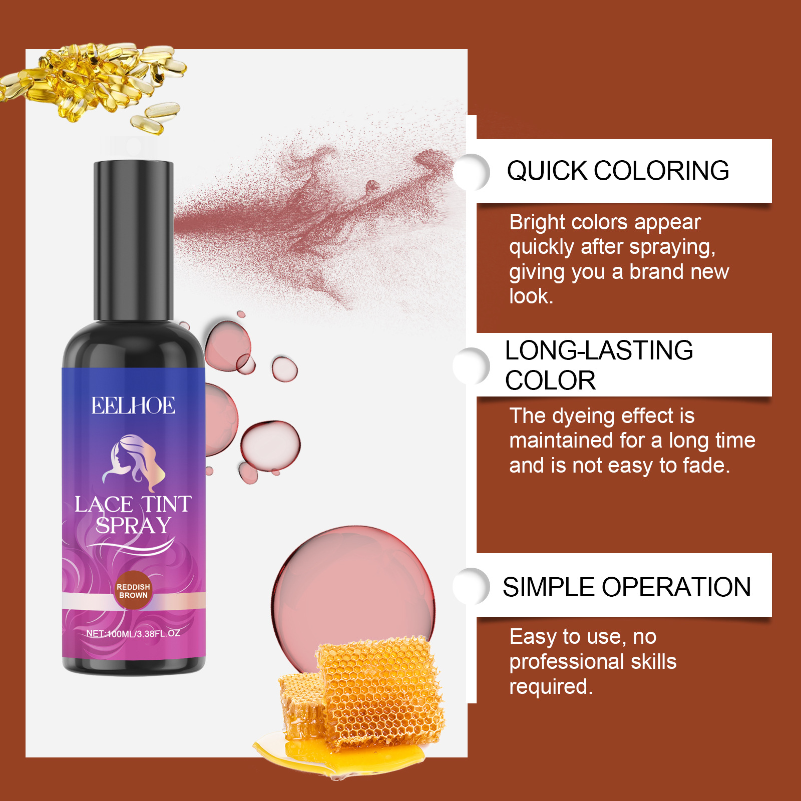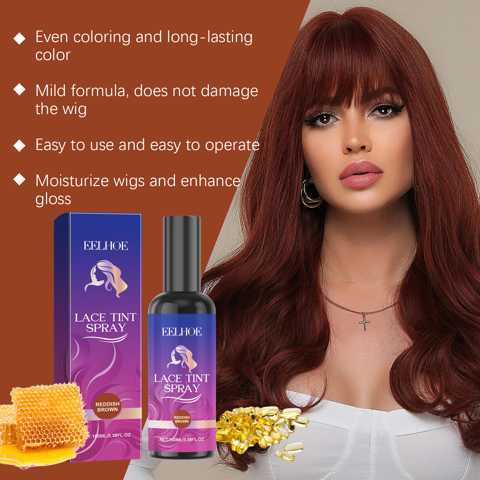 EELHOE レッドブラウンレースウィッグ理髪スプレー髪かつらスタイリング着色長期的なカラースプレー
