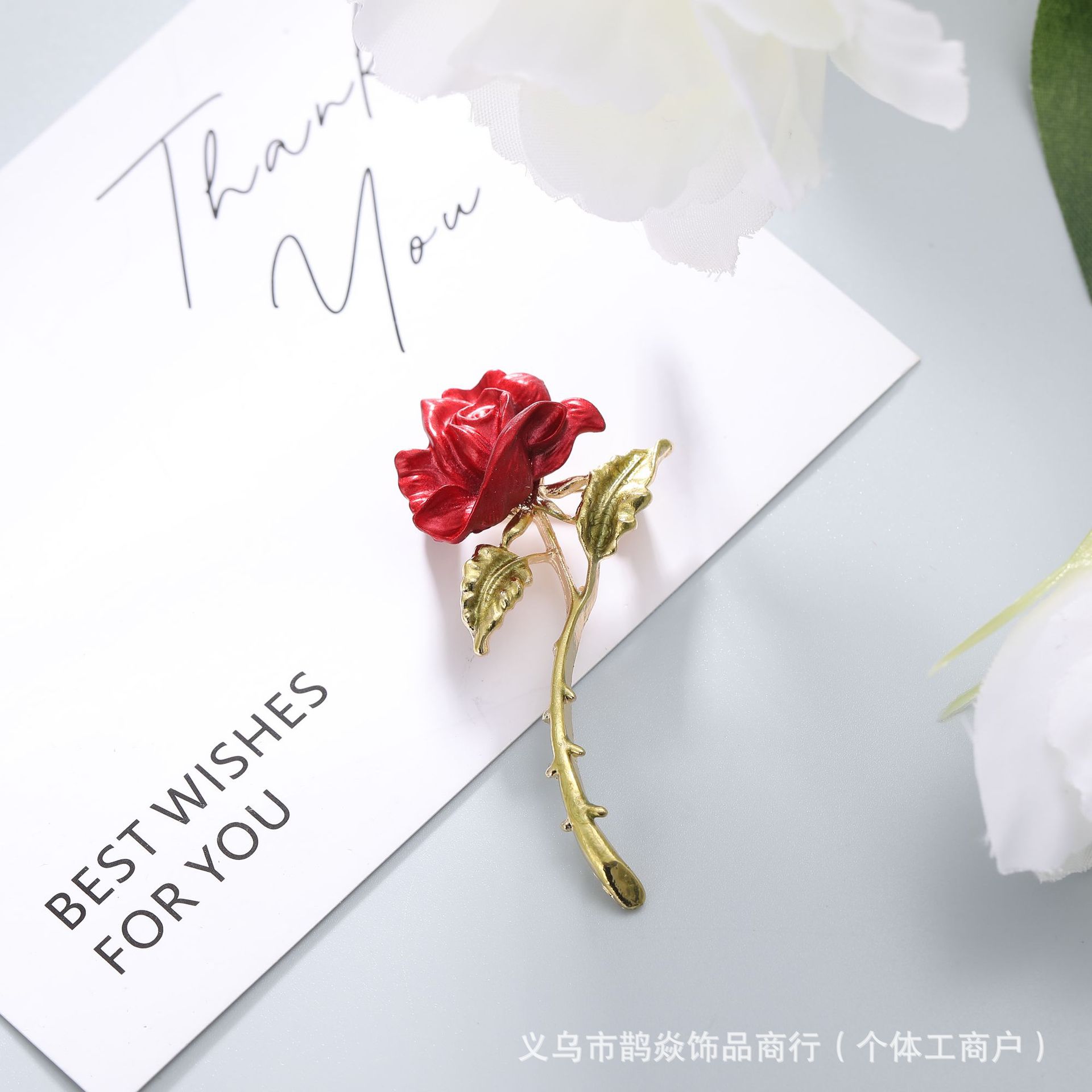 法式新款红玫瑰花朵胸针精致设计别针礼服气质外套时尚配饰饰品