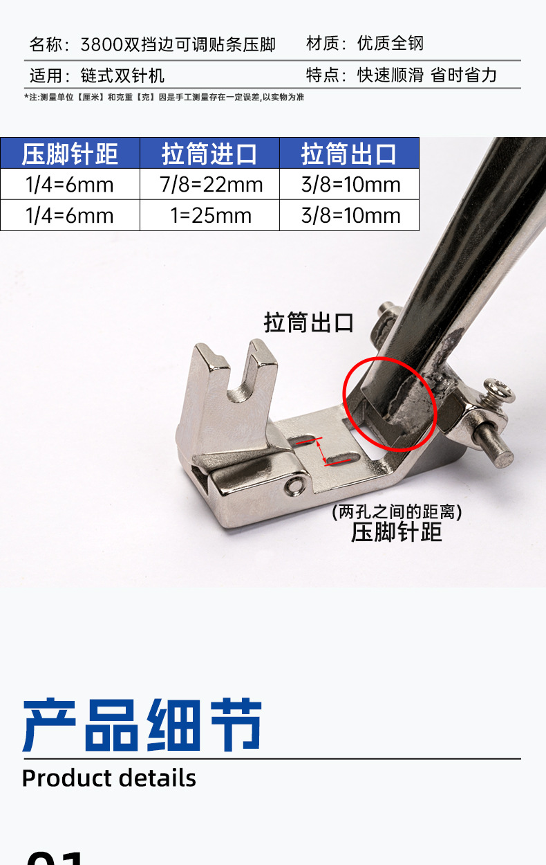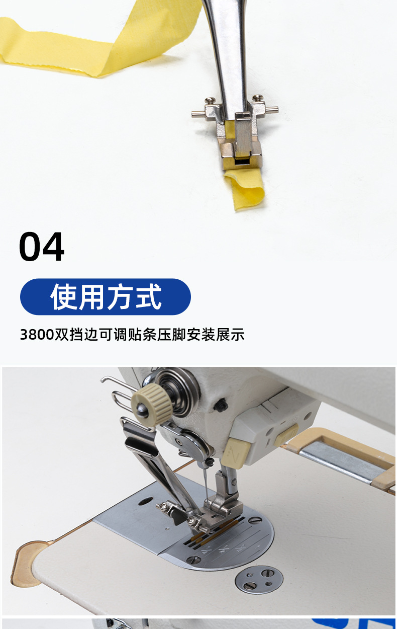 3800 チェーン二本針機、調整可能なウェビングストリップ折りたたみチューブ、ダブルナイフエッジストリップ、プルチューブ、ショルダーストリップ押え金