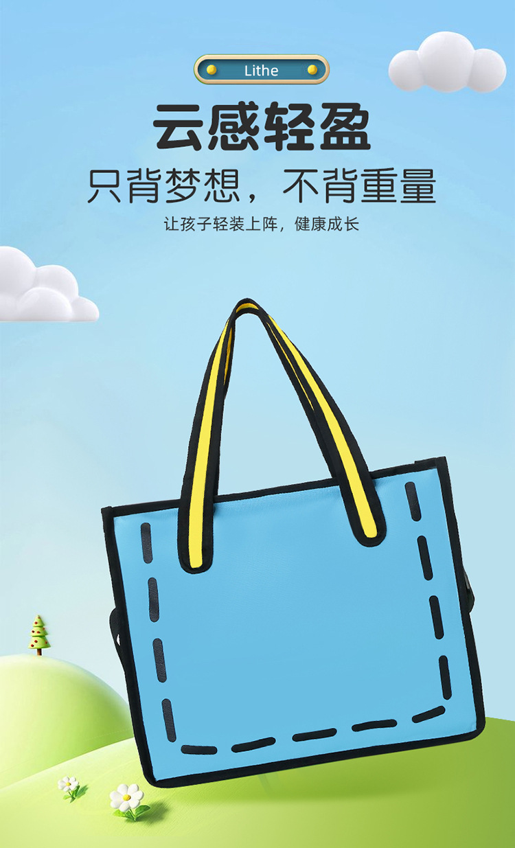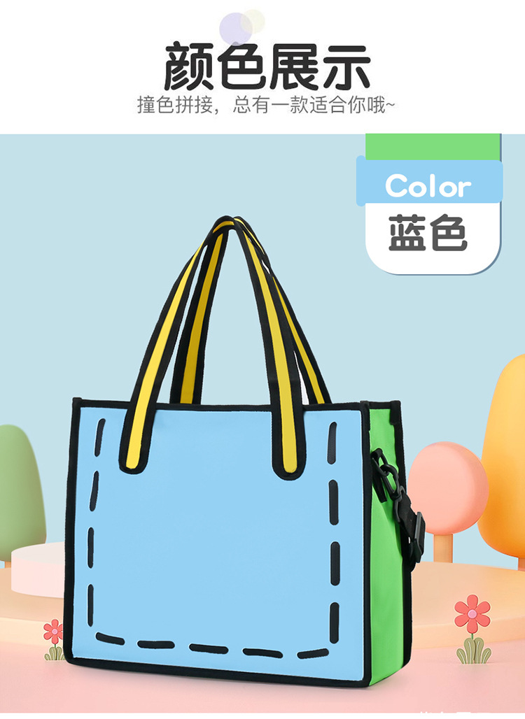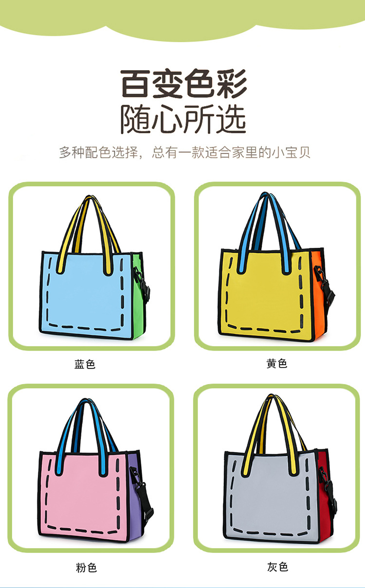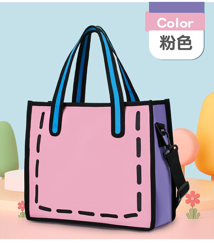 小学生向け新学期塾バッグ、漫画風可愛いハンドバッグ、学習塾用ショルダーバッグ、斜め掛け、名入れ可能