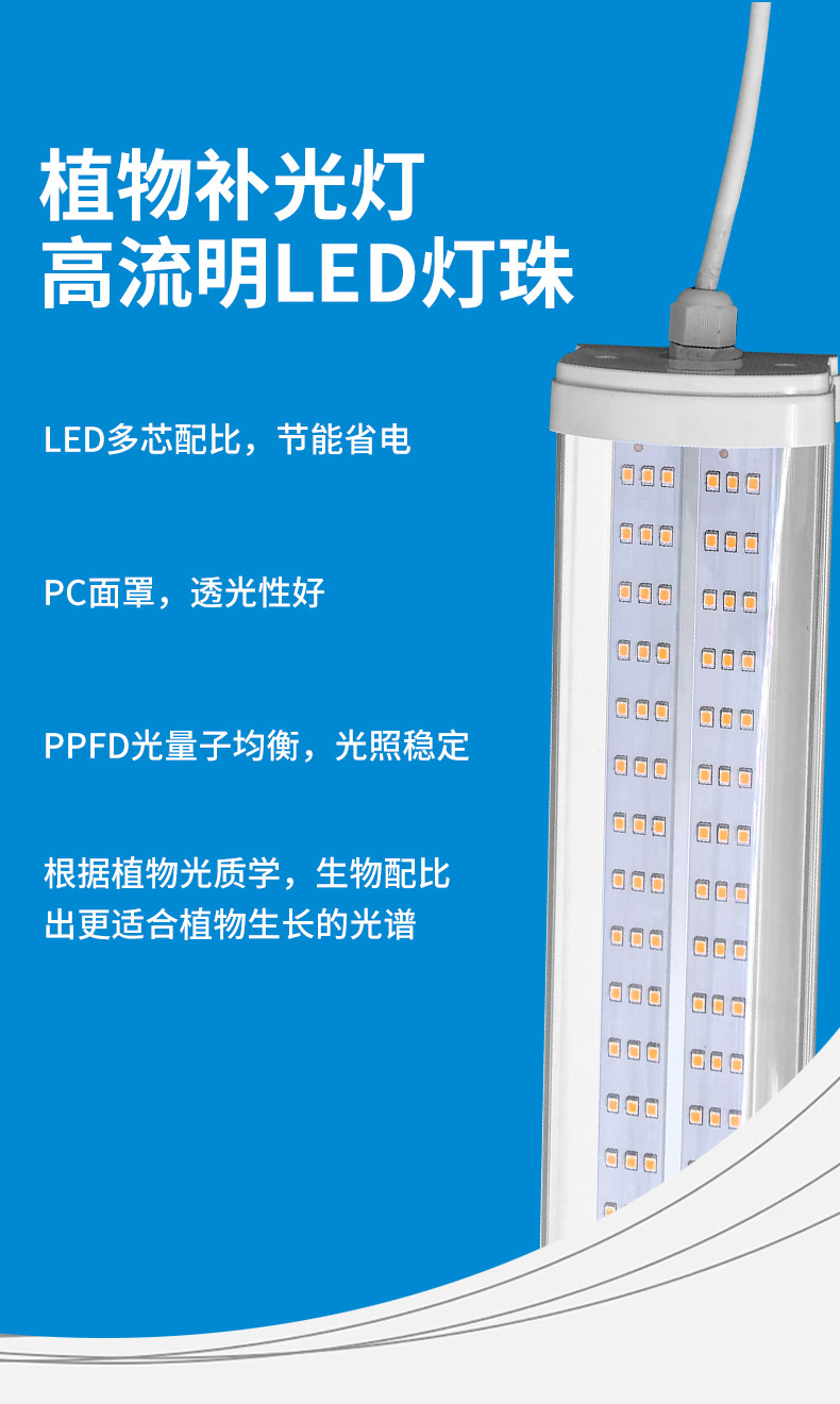 植物成長灯LED全スペクトルT8三列花卉着色擬徒長水培葉菜類植物補助灯