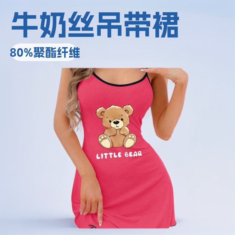クロスボーダーヨーロッパとアメリカのサスペンダースカート、女性用ショートスカート、快適なホームカジュアルホームウェア、セクシーでウェアラブルなプリントナイトガウン