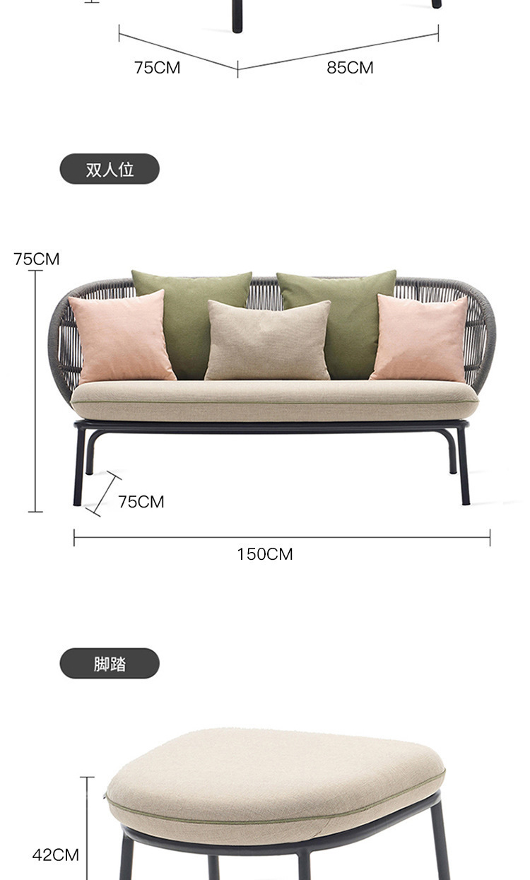 北欧屋外屋外中庭レジャー籐ソファ屋外ヴィラガーデンB&B防水日焼け止め家具セット