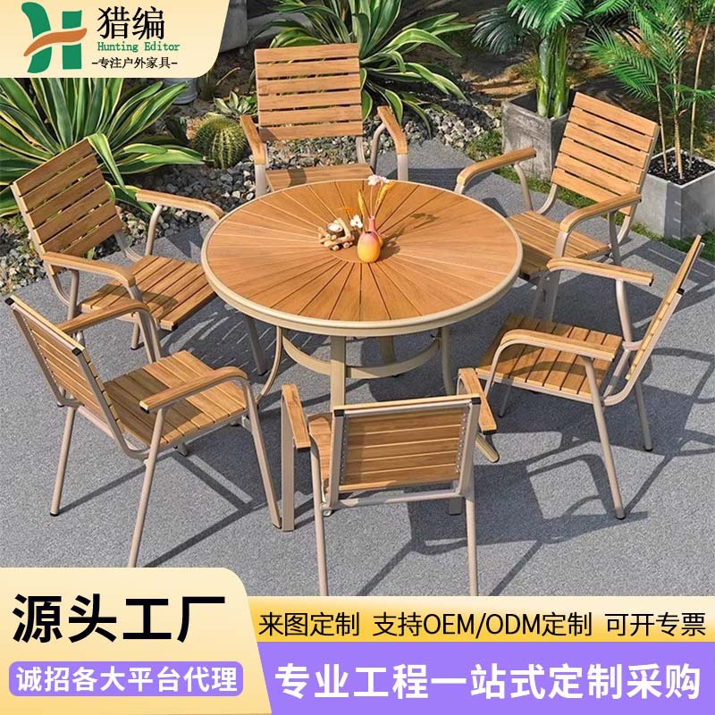户外塑木桌椅庭院防腐木质防水防晒露天阳台室外休闲花园桌椅组合