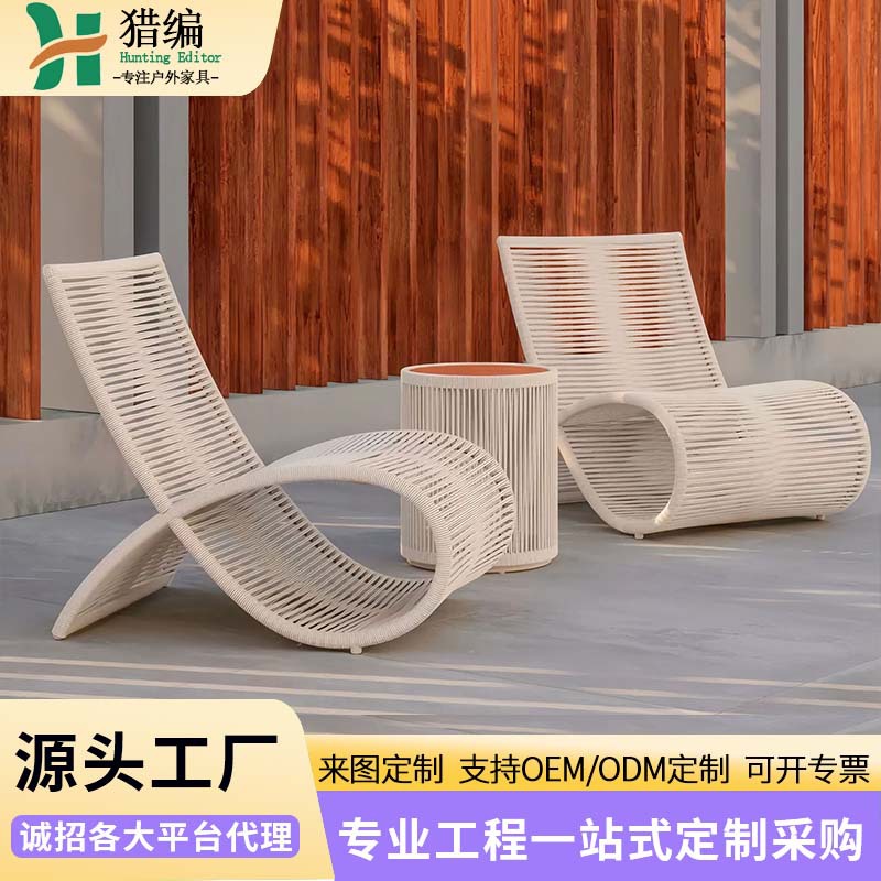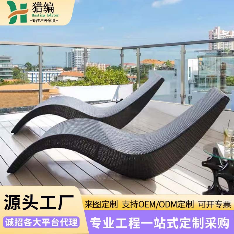 户外酒店创意藤编躺床露天阳台休闲防水防晒庭院花园室外躺椅家具