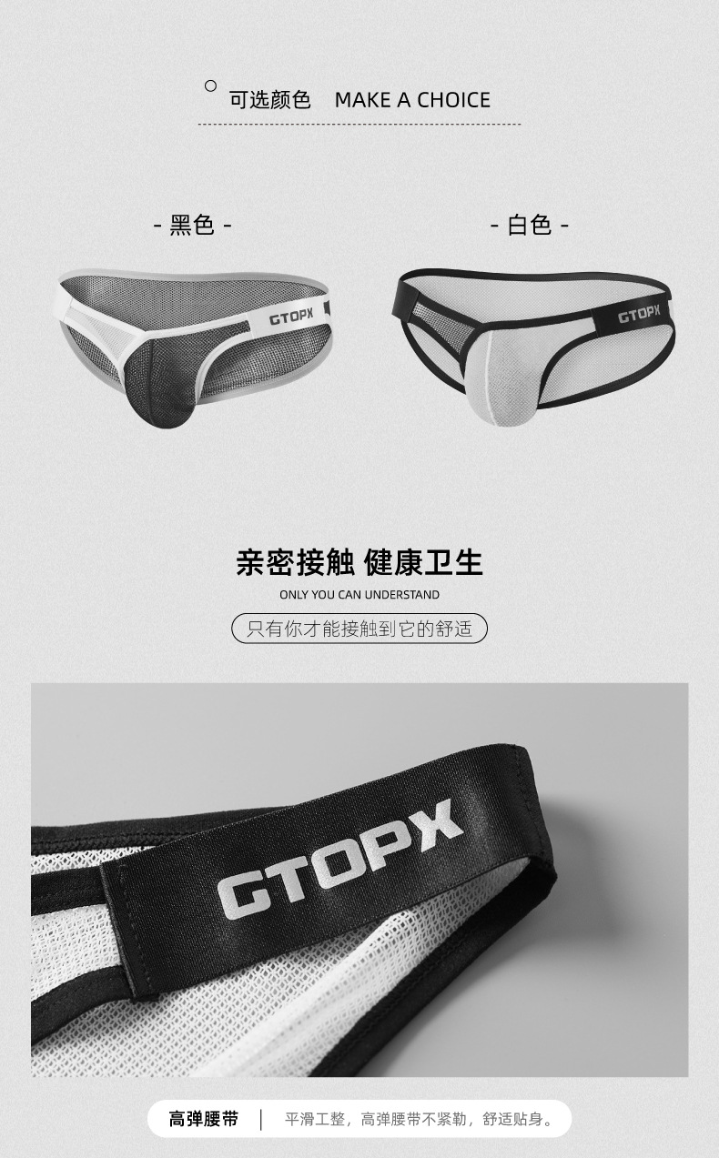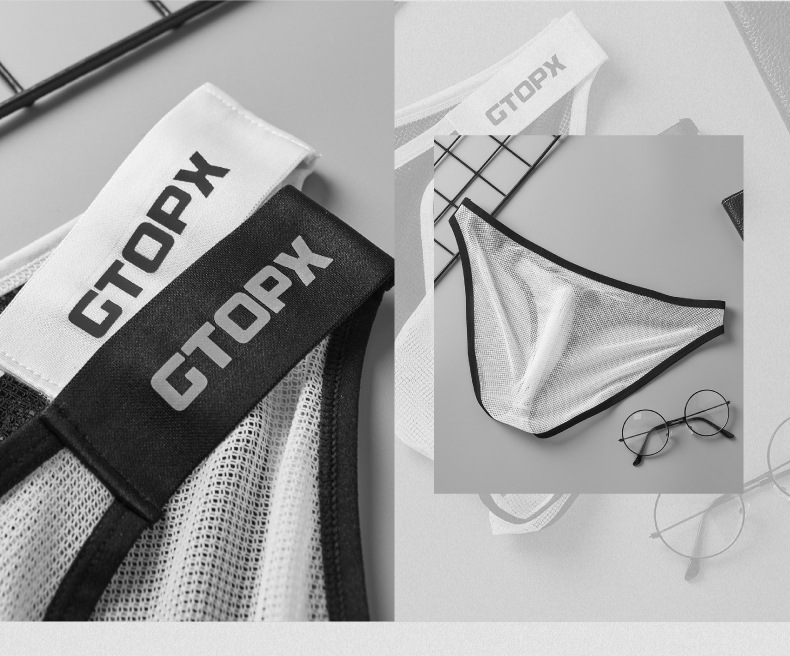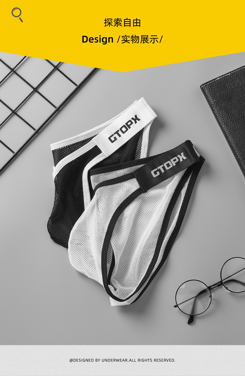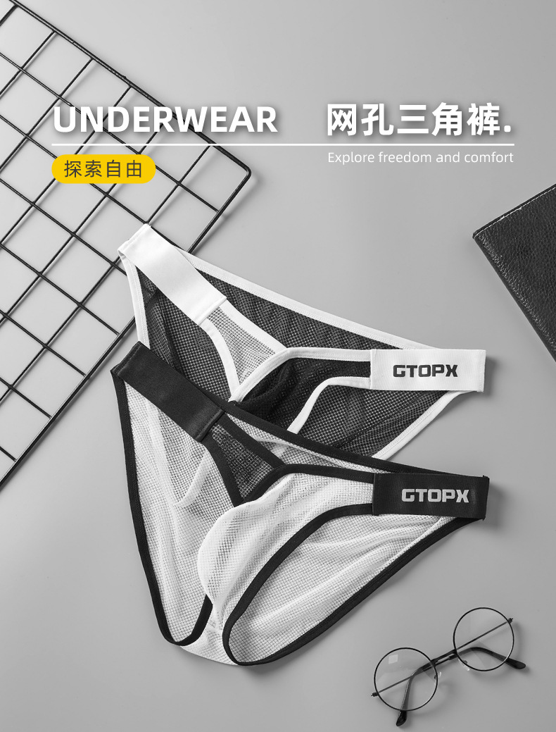 GTOPX メッシュメンズ薄いアイスシルク単層 U 凸ローウエスト通気性セクシーなメッシュシースルー三角パンツ