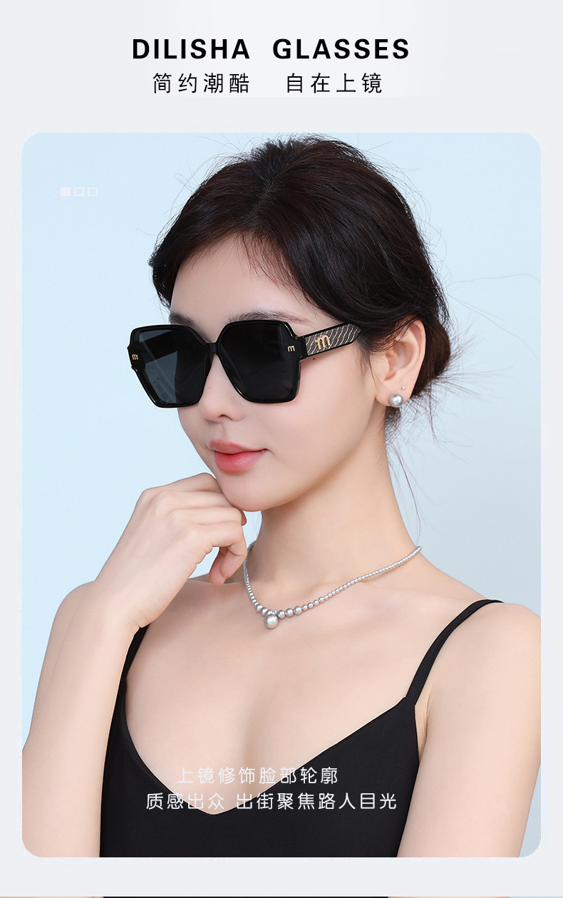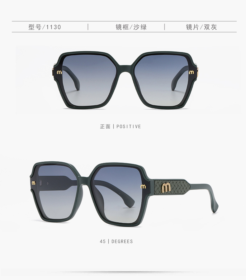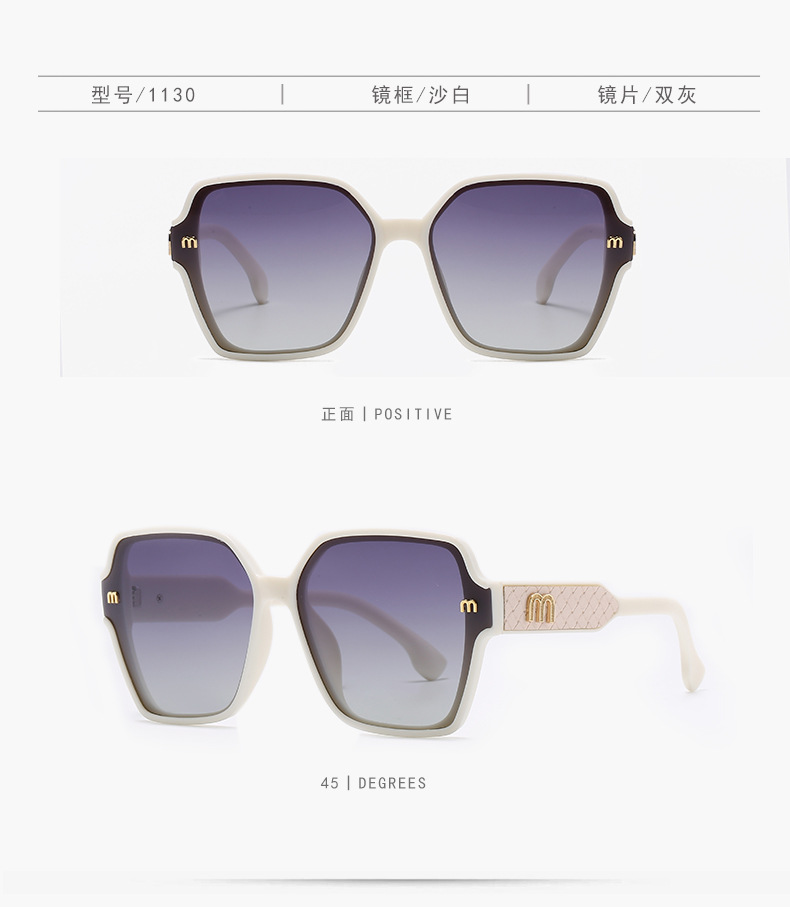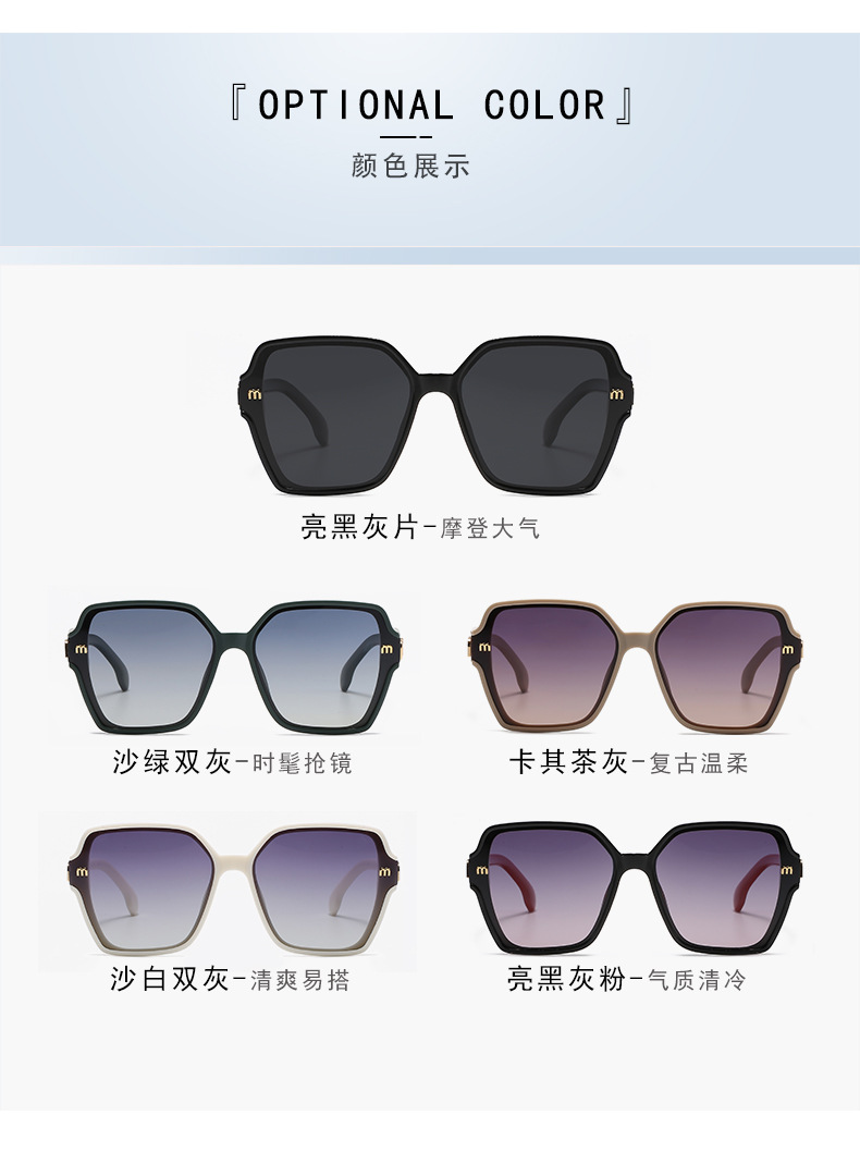 ライトラグジュアリーサングラス、クラシックスクエアフレームレディースサングラス、紫外線防止偏光ミラー、日よけ、丸顔、大きな顔、スリム