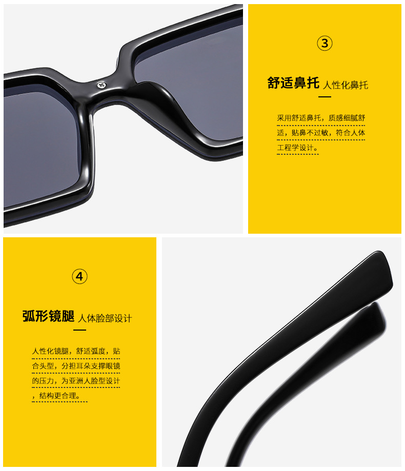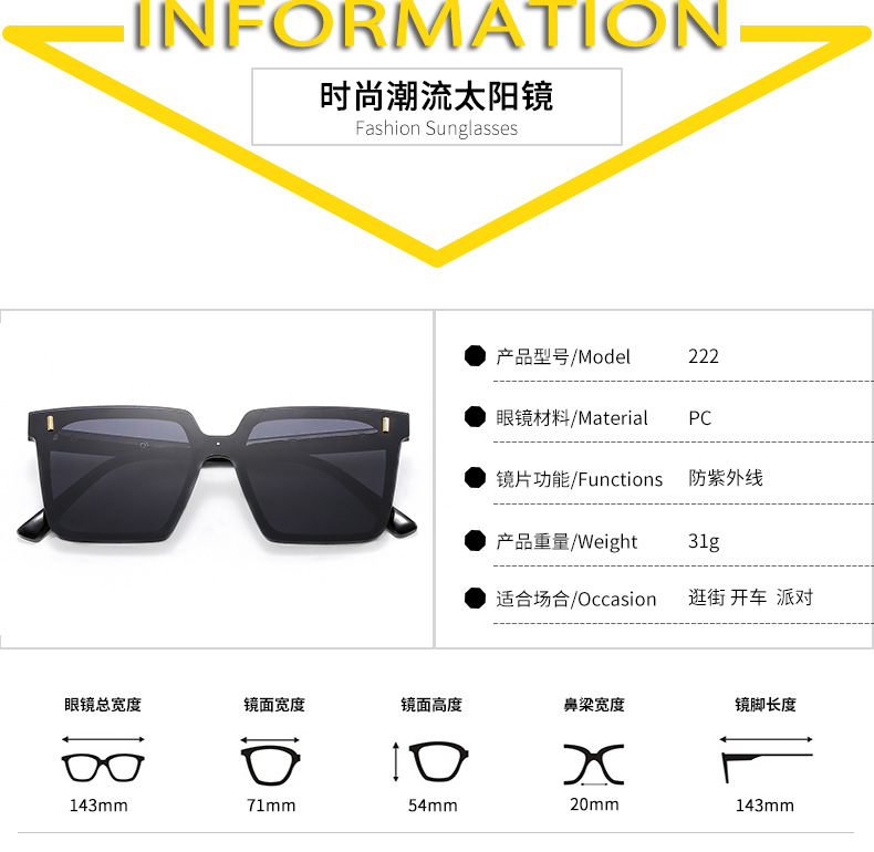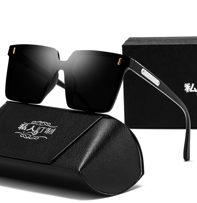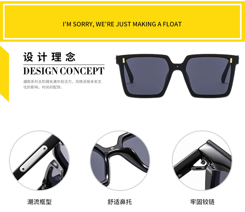 女性用の新しいスクエアフレームサングラス、ファッショナブルなラージフレーム、ネットセレブと同じスタイルのプレーンサングラス、ストリート撮影、痩身日焼け止めサングラス