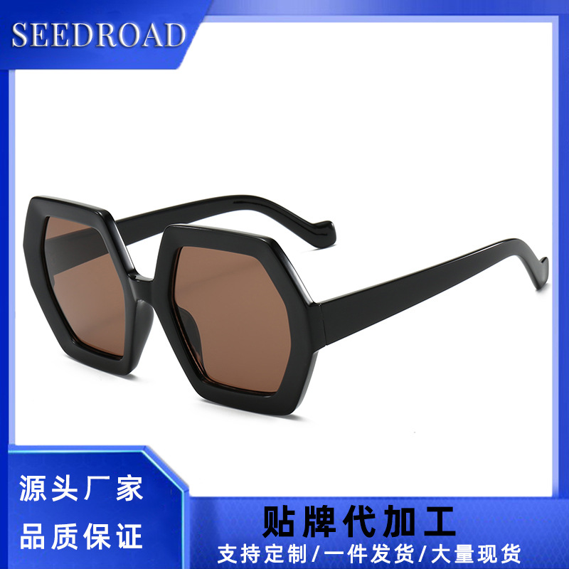 新しいヨーロッパとアメリカンスタイルのポリゴンメタルヒンジサングラス女性のファッショントレンド大きなフレームスクエアフェイスクロスボーダー外国貿易サングラス