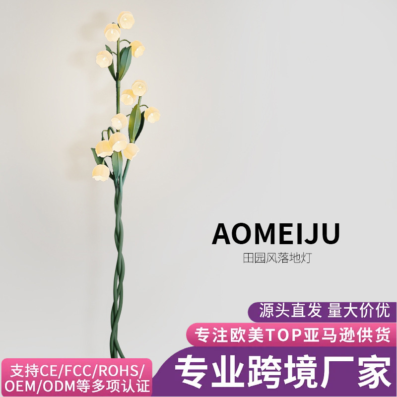 跨境复古铃兰花落地灯客厅高颜值沙发旁法式田园卧室氛围花朵灯