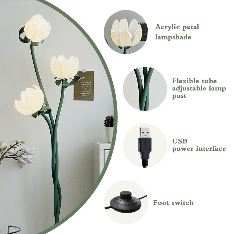 亚马逊跨境美式复古花朵落地灯客厅沙发旁简约卧室立式床头氛围灯
