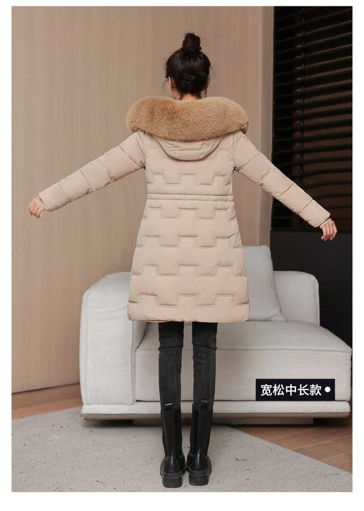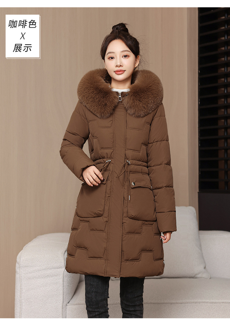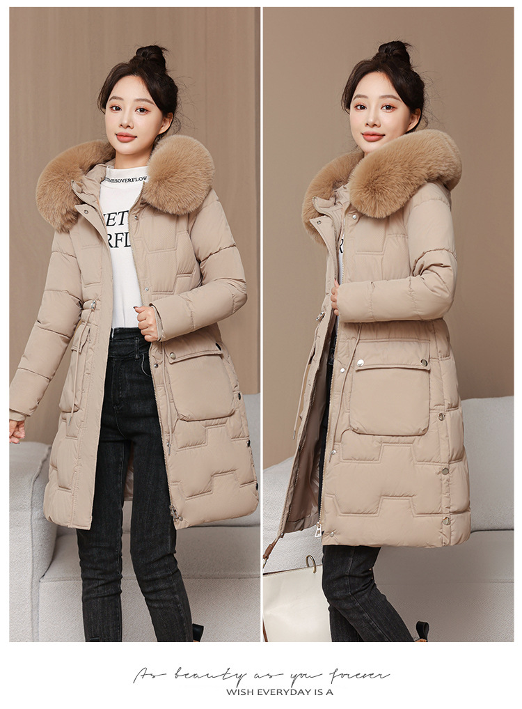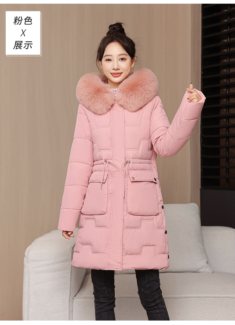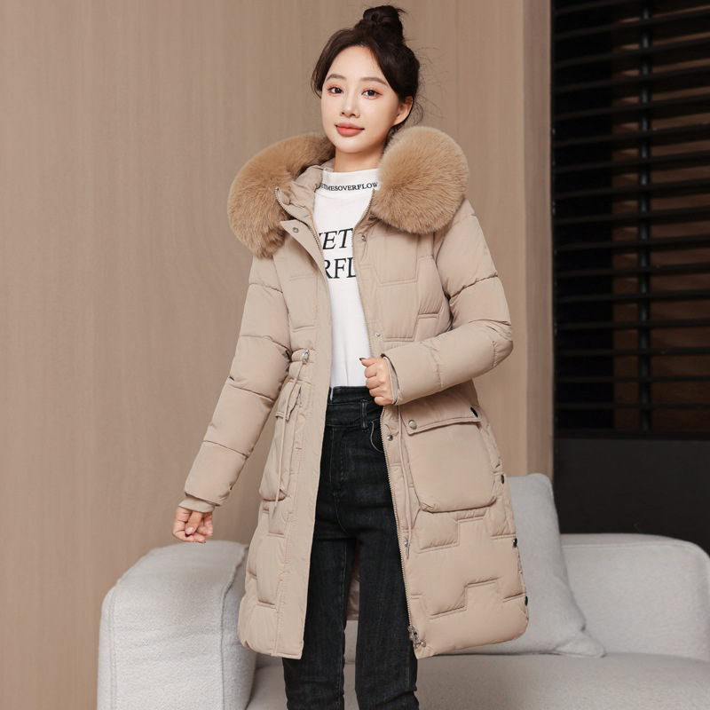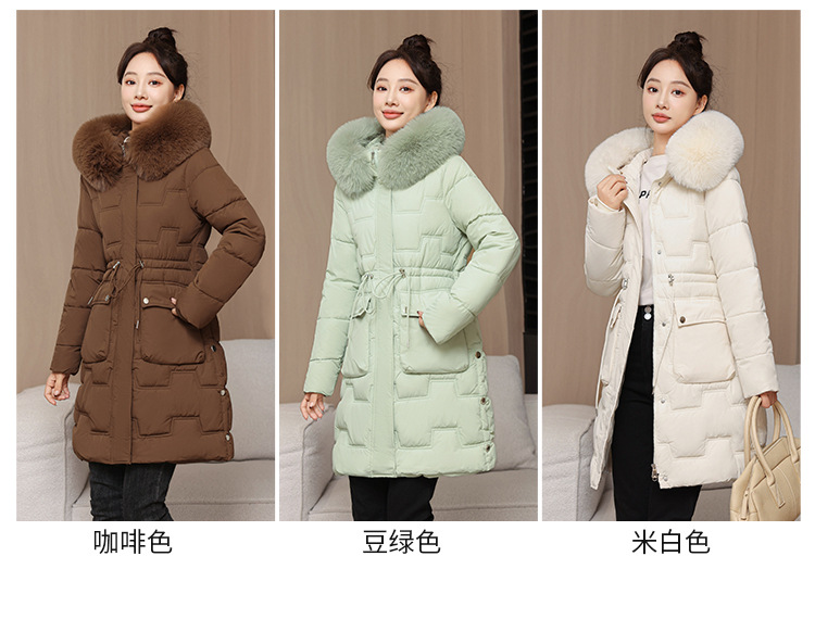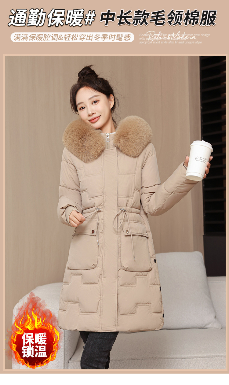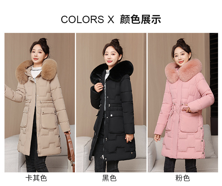 跨境棉衣女长款2025冬季新款韩版修身棉袄加厚保暖大毛领大码外套