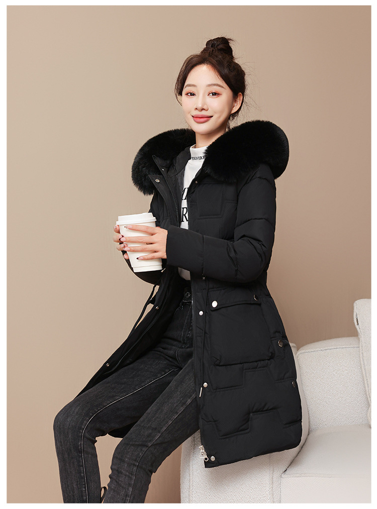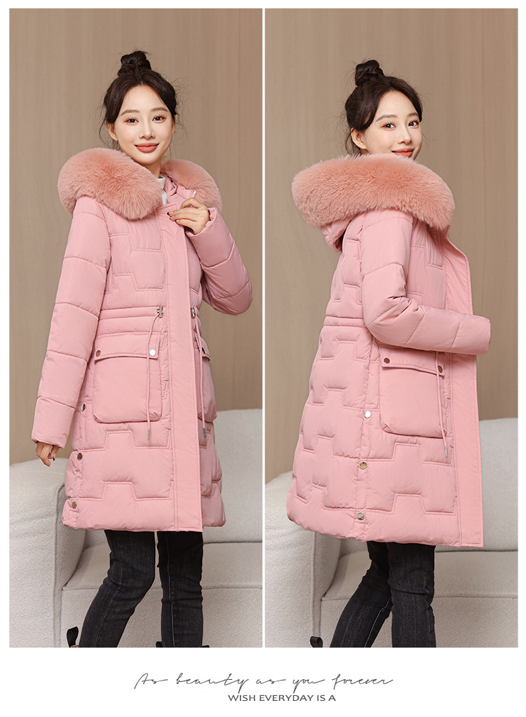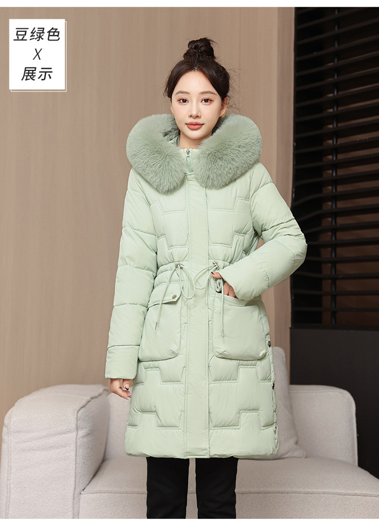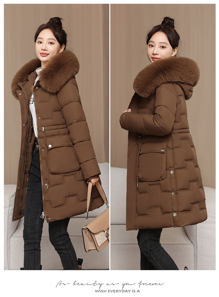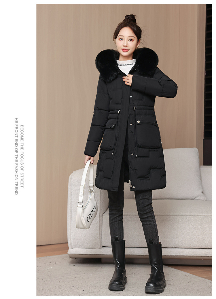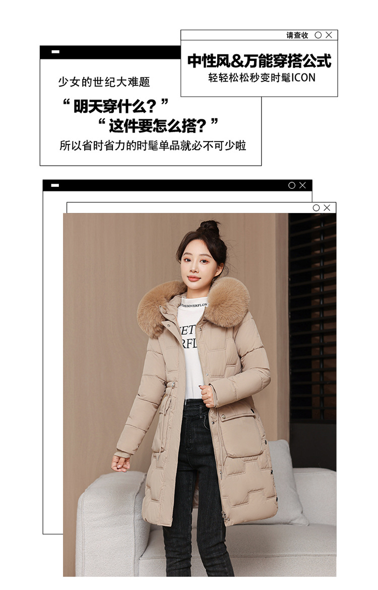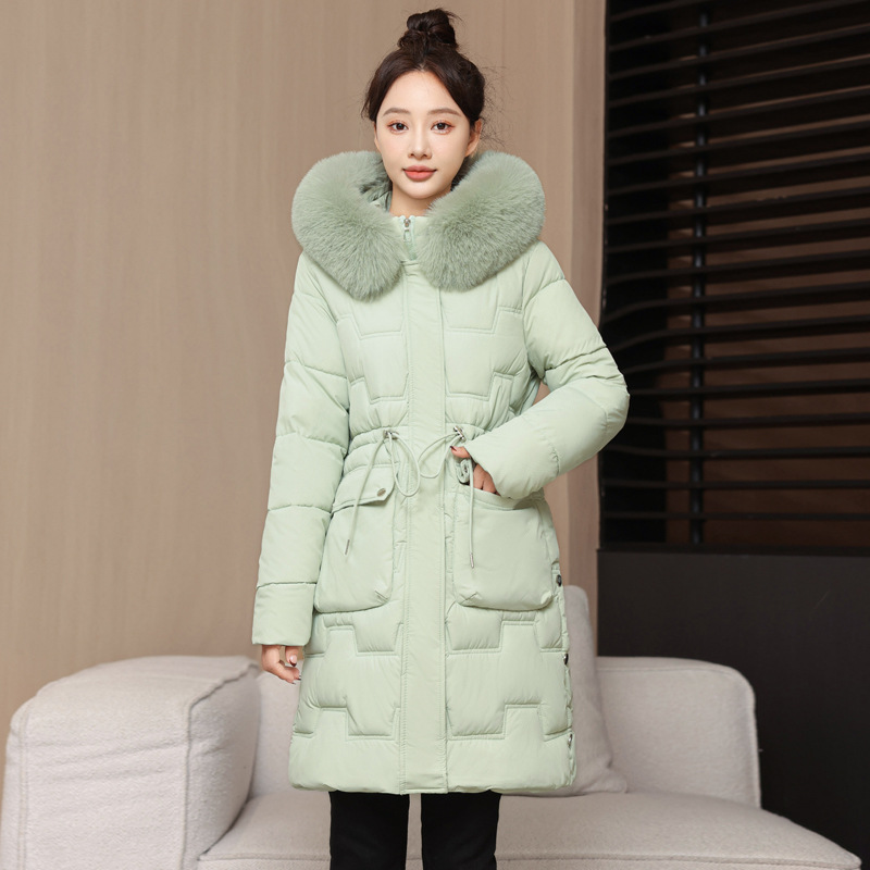 跨境棉衣女长款2025冬季新款韩版修身棉袄加厚保暖大毛领大码外套