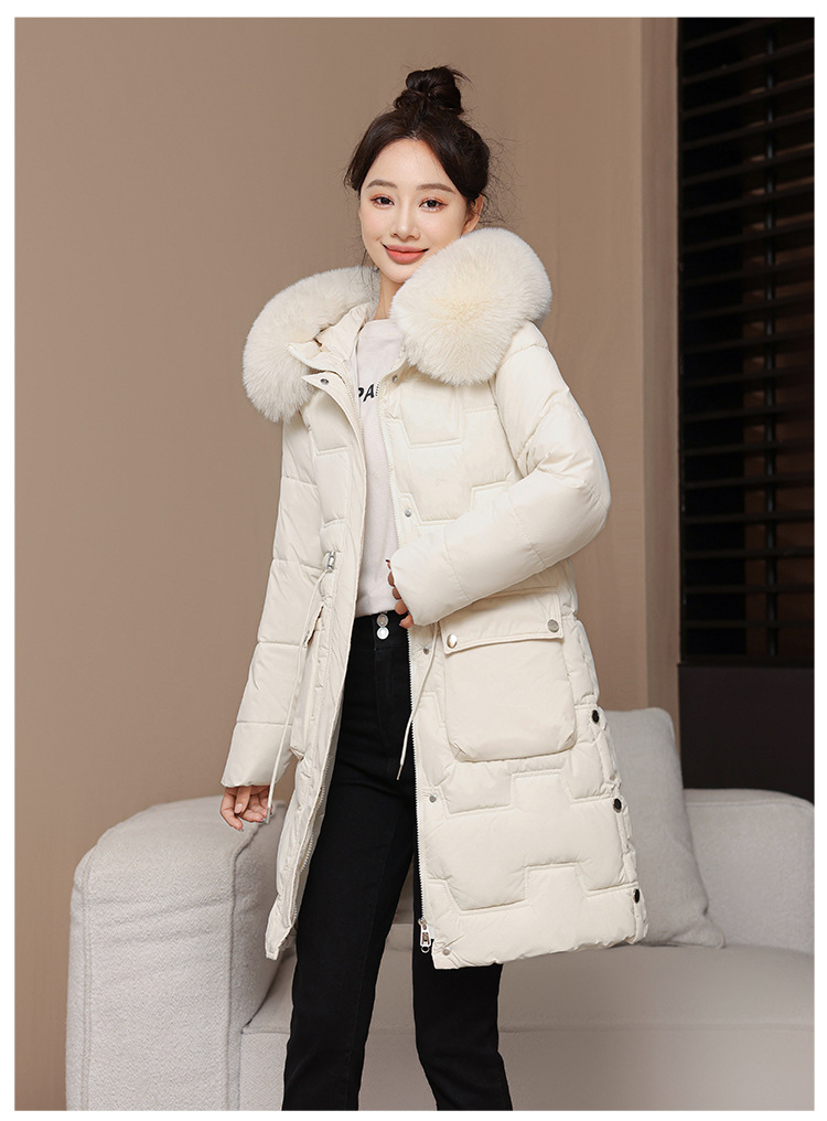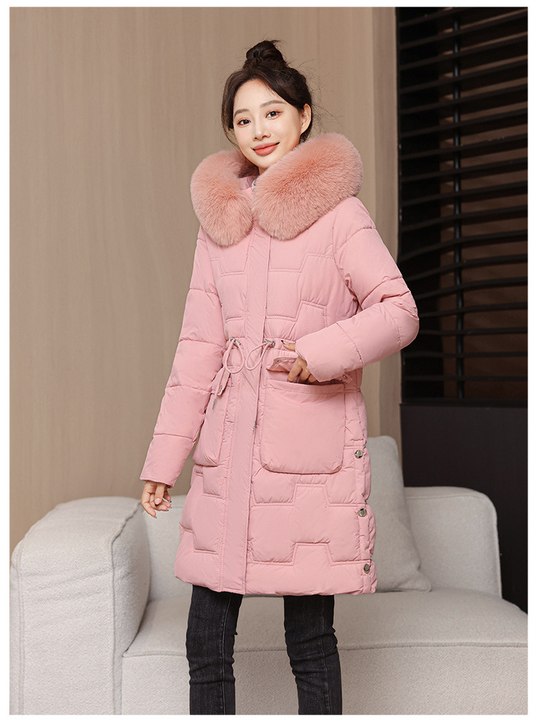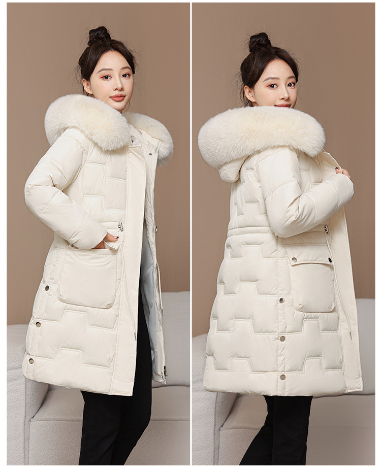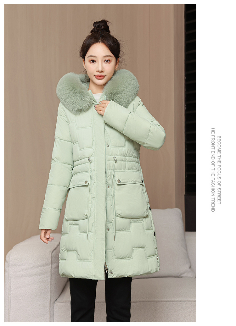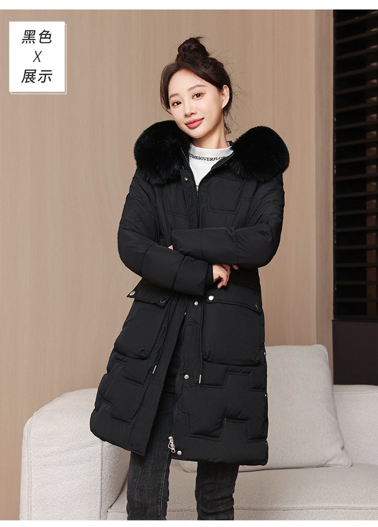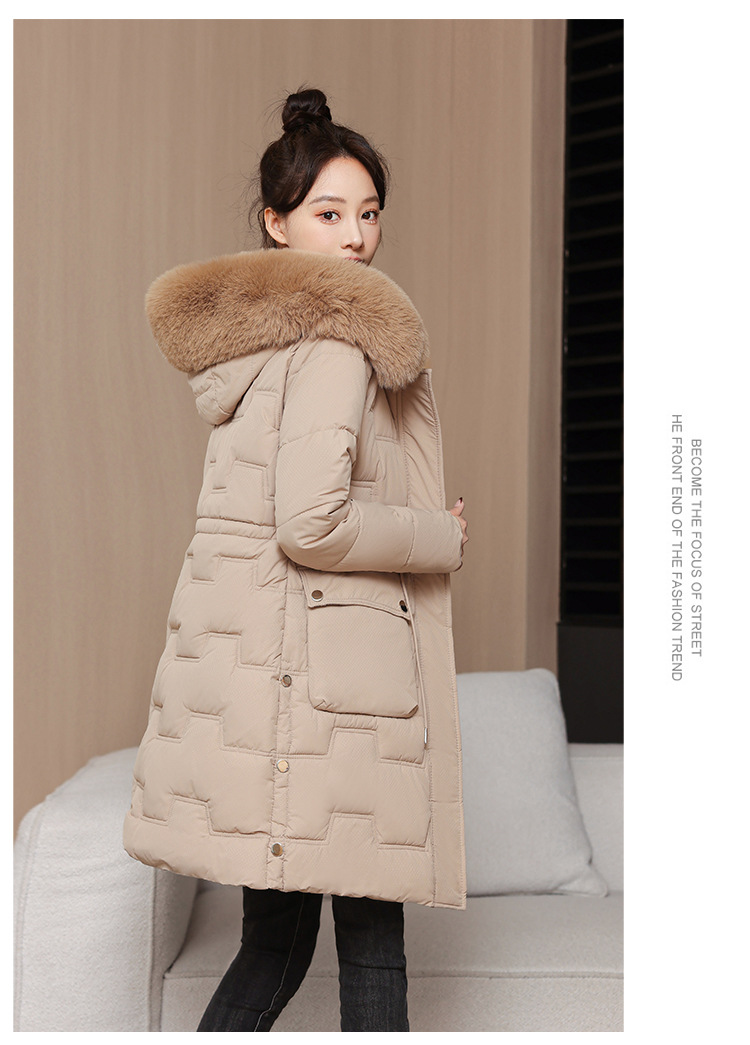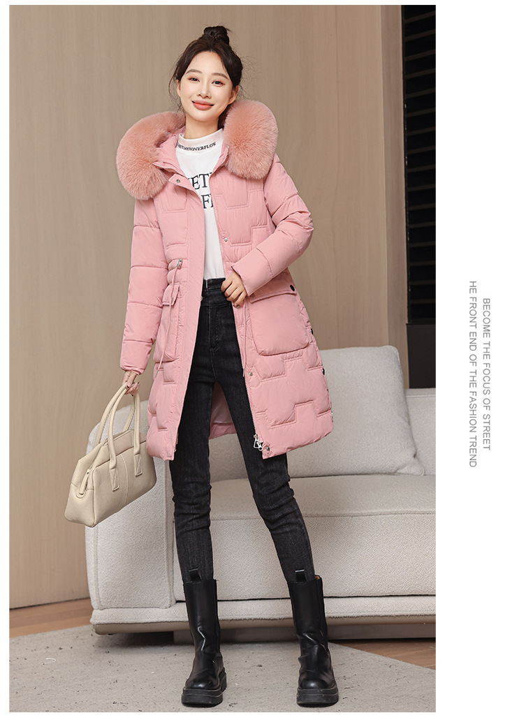跨境棉衣女长款2025冬季新款韩版修身棉袄加厚保暖大毛领大码外套
