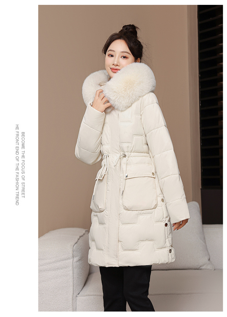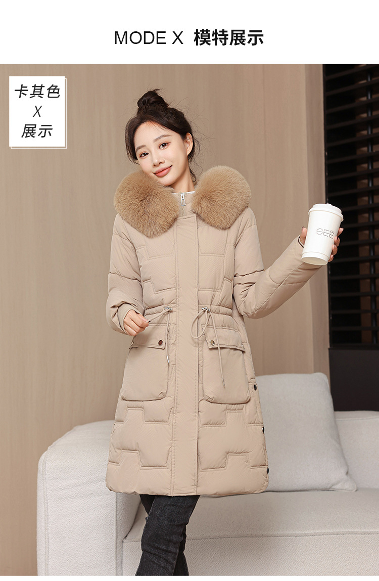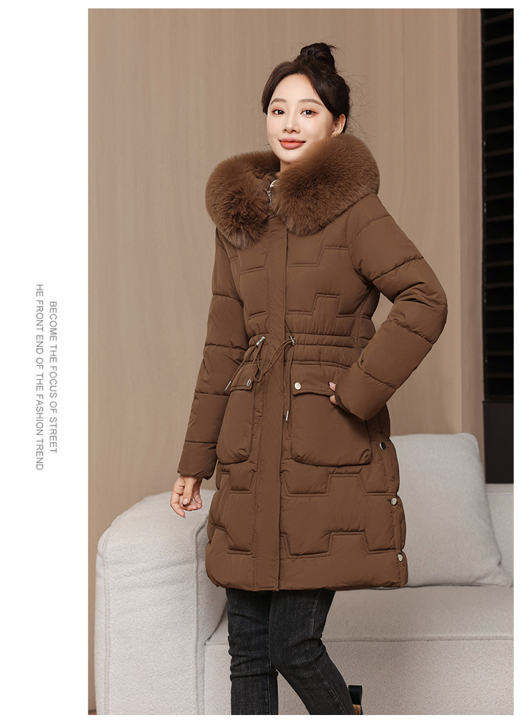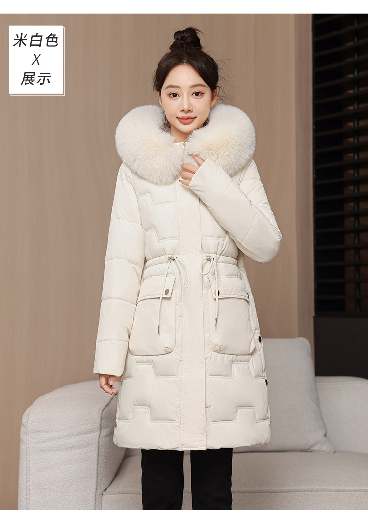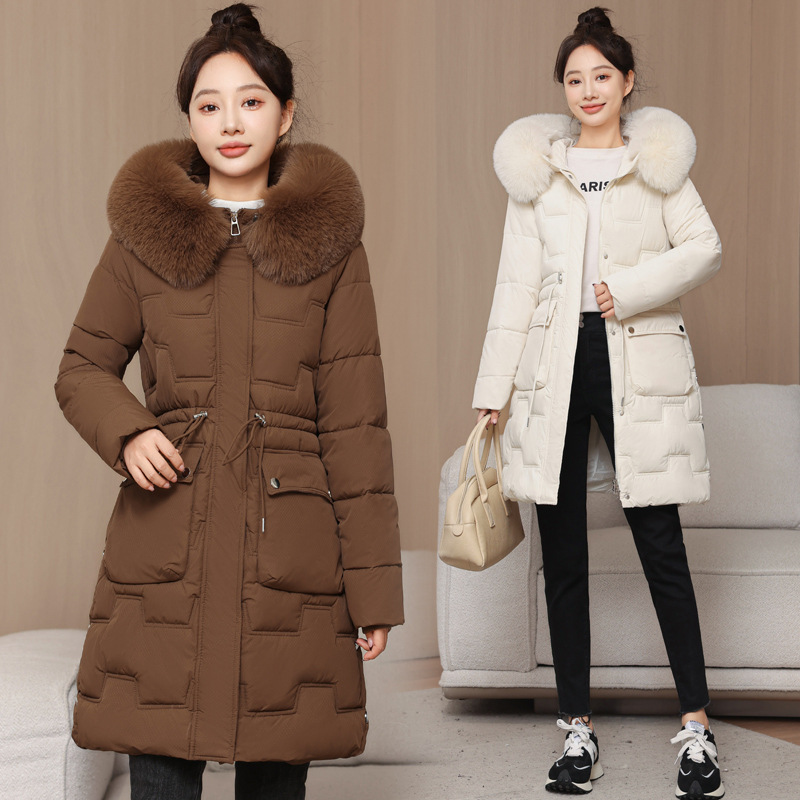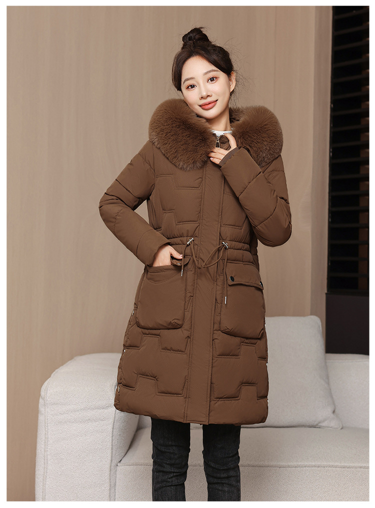 2025年モデル クロスボーダーパーカー レディース ウエストシェイプ フード付き 大きなファー襟付き 裏起毛コットンジャケット おしゃれ 韓国風 秋冬コート 防寒