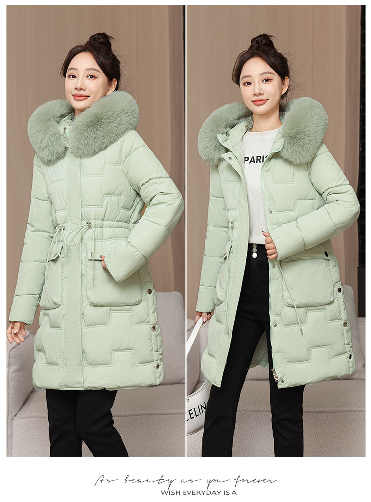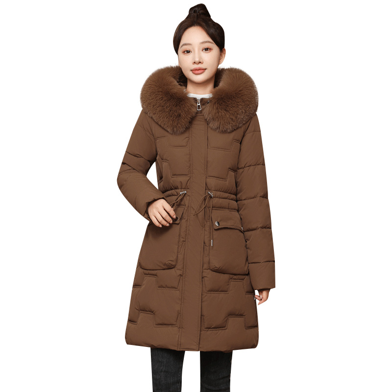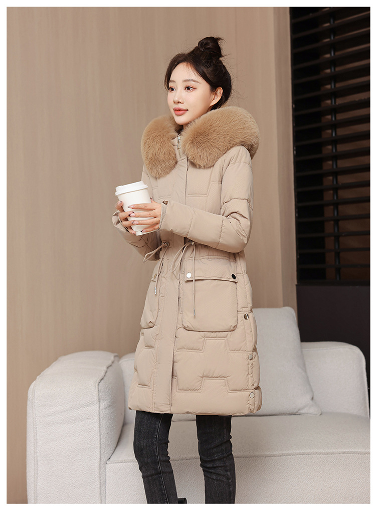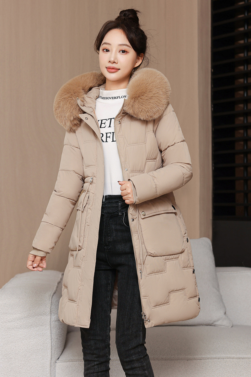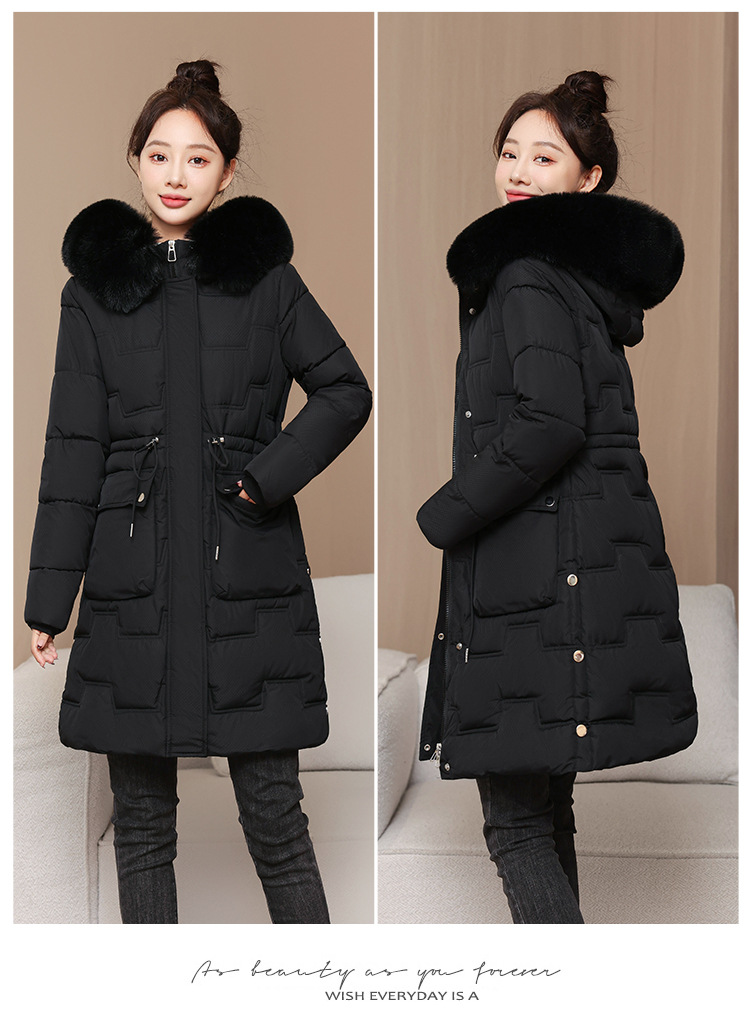 2025年モデル クロスボーダーパーカー レディース ウエストシェイプ フード付き 大きなファー襟付き 裏起毛コットンジャケット おしゃれ 韓国風 秋冬コート 防寒