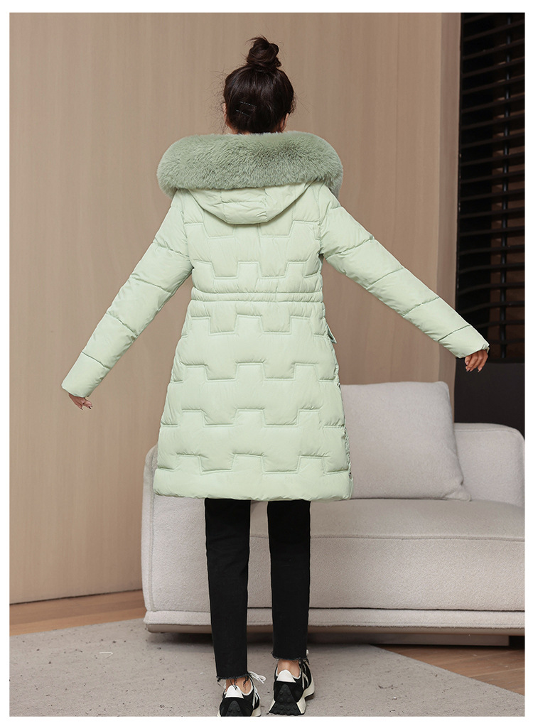 綿入りジャケット レディース 冬 韓国風ジャケット 2025 新しい韓国風ロングスリムウエスト大きな毛皮の襟の厚い綿入りジャケット