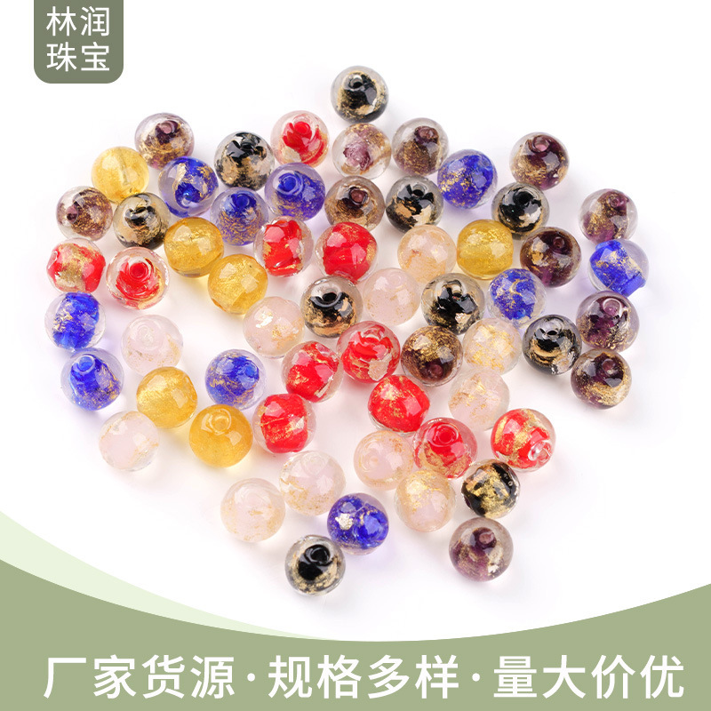 北京香灰琉璃金箔珠七彩色金银箔散珠diy手链项链耳坠串珠材料