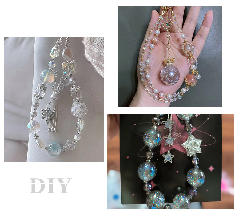 新款人鱼姬星空串珠子轻奢简约直孔散珠DIY手机链钥匙扣饰品配件