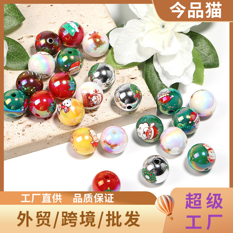 新しいアクリルクリスマスビーズカラープリントビーズファッションdiy携帯電話チェーンキーホルダー散珠卸売り