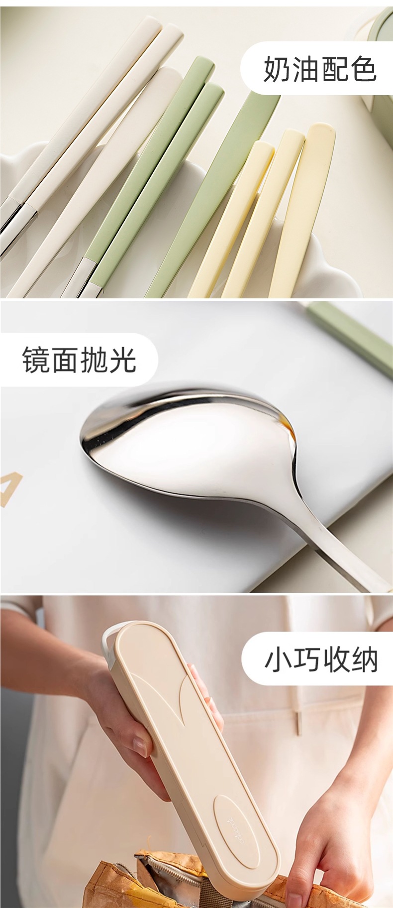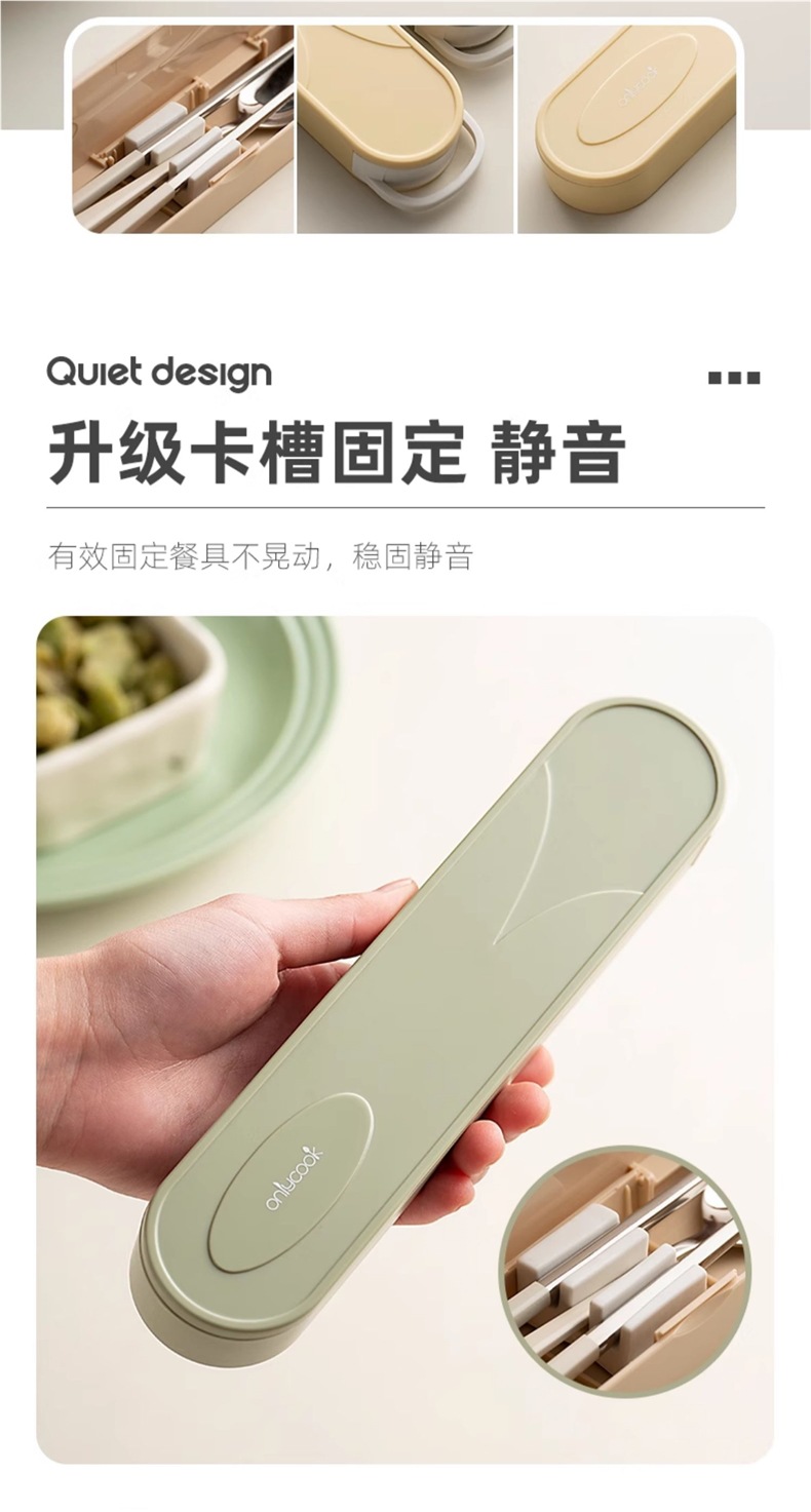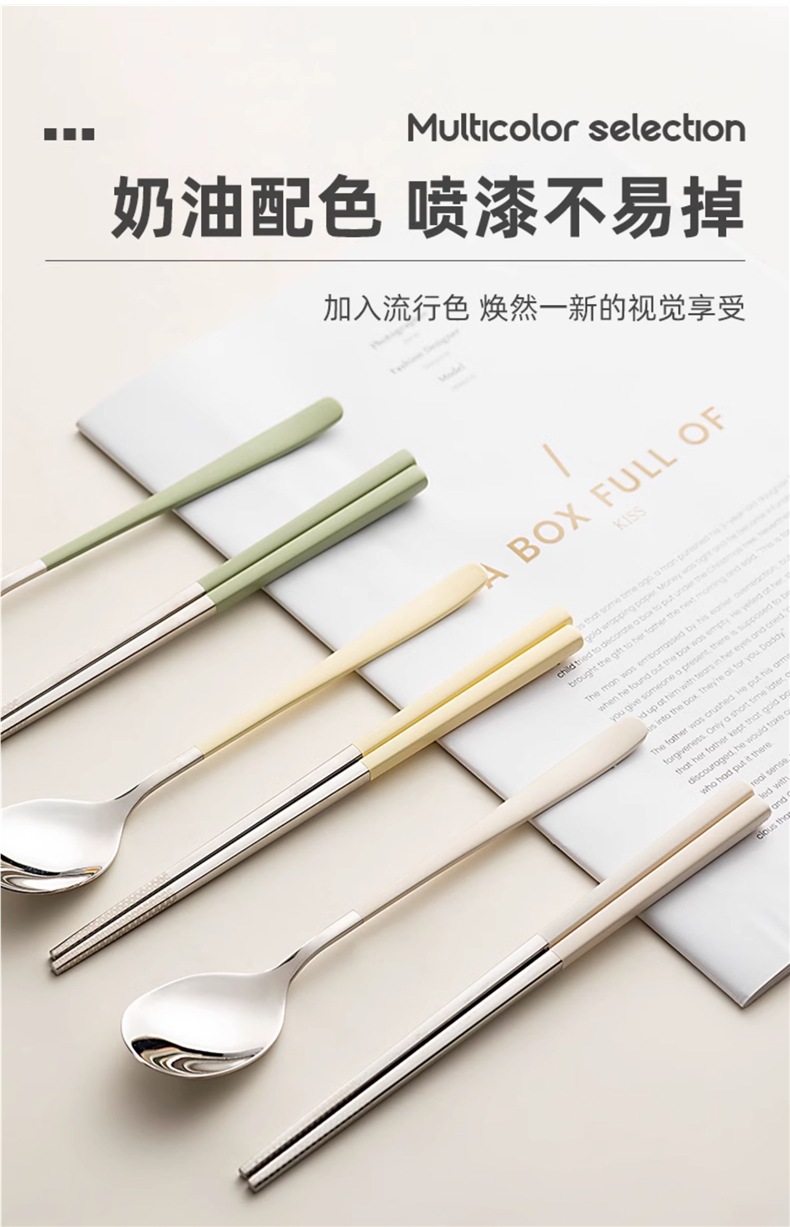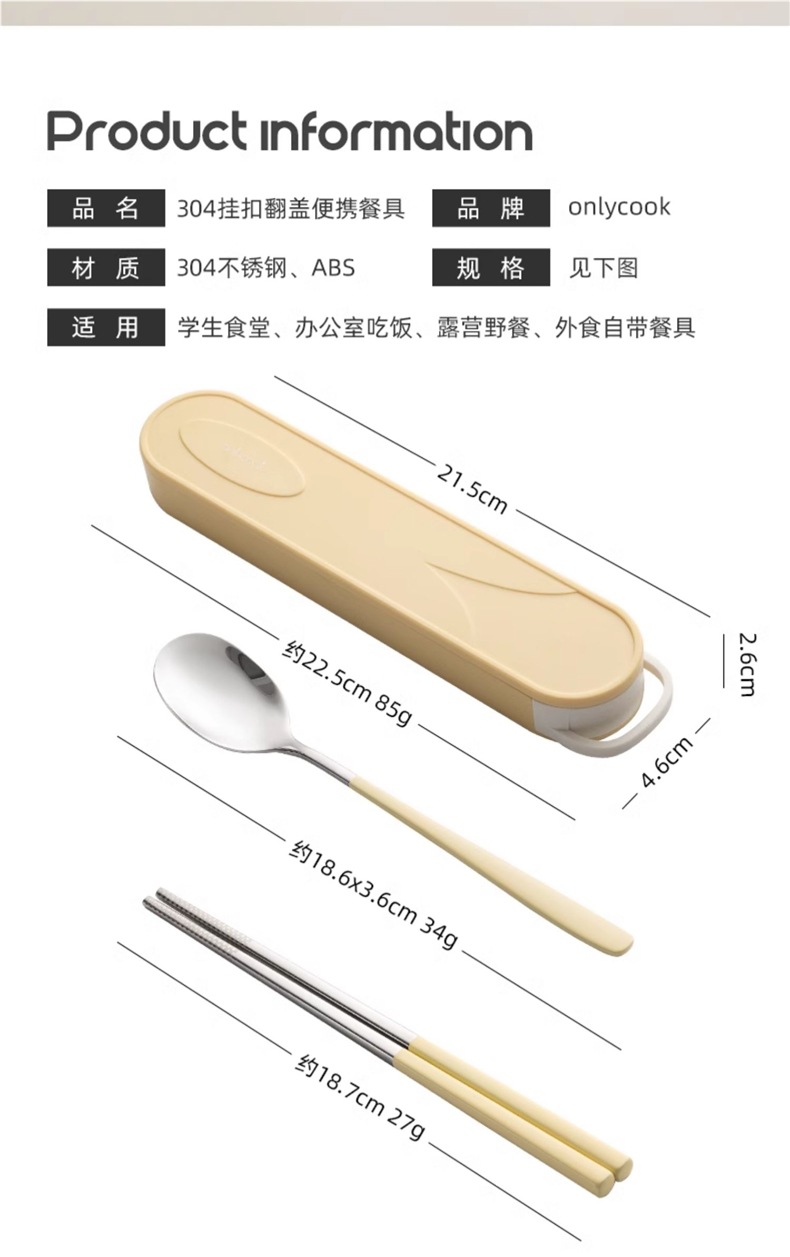 クリーム色学生ポータブル食器304ステンレス箸スプーンセット箸スプーン収納ボックス