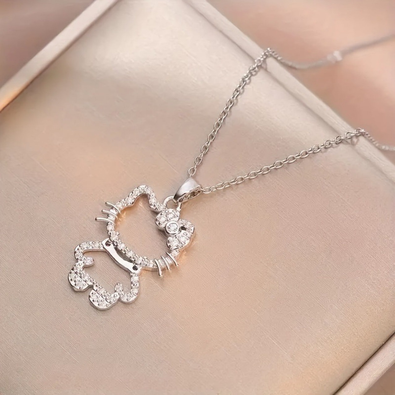 新作日韓風子猫ネックレスペンダント レディース ジルコニア 個性的デザインペンダント おしゃれで上品なチタン鋼ネックレス