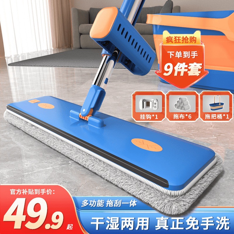Jiabanshou モップ、手洗い不要、怠け者向けの新しい家庭用モップ、乾湿両用のフラットモップ
