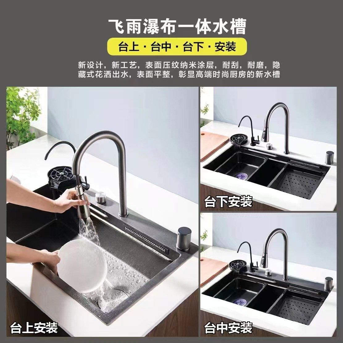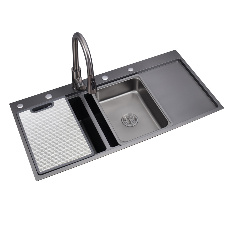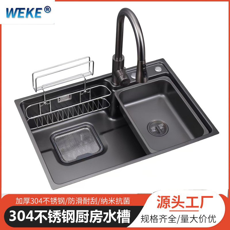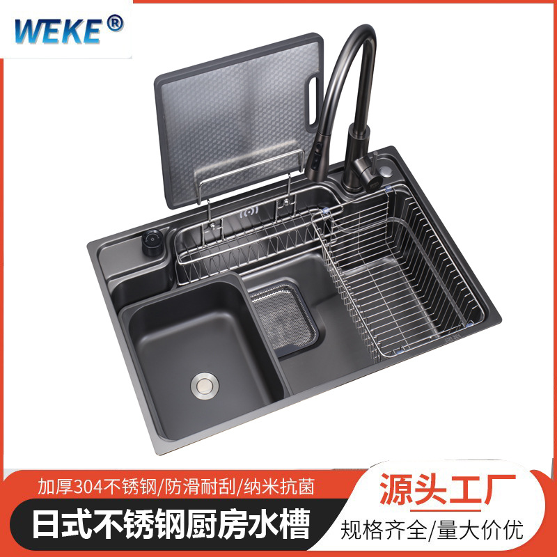 洗面器単槽日本式全米粒厨房水槽304ステンレス洗面器銃黒大洗面器一体