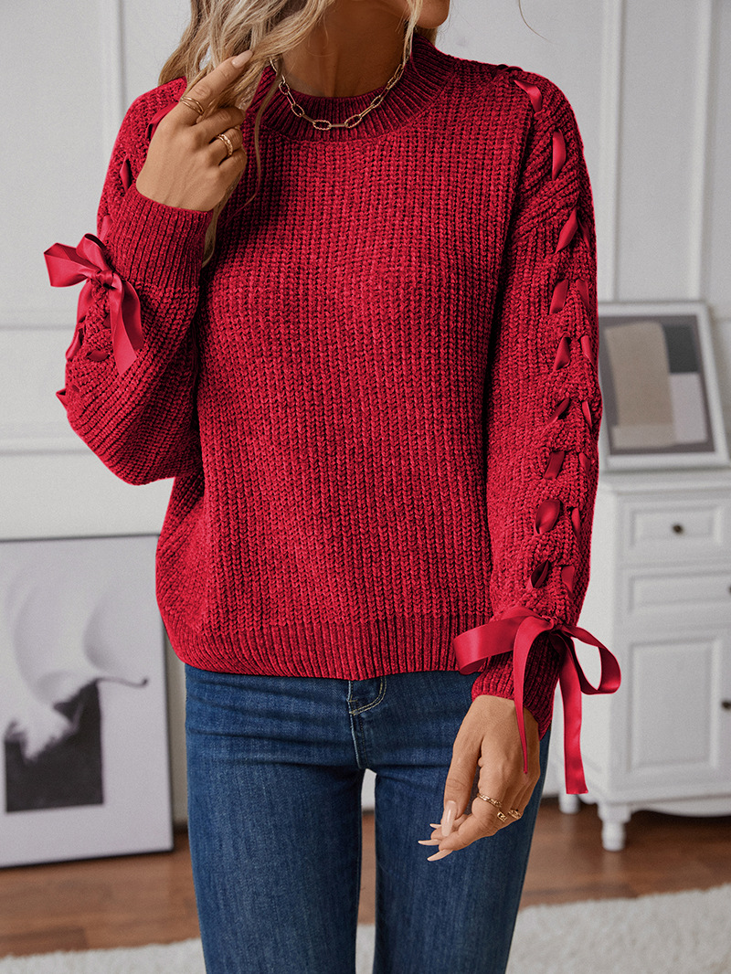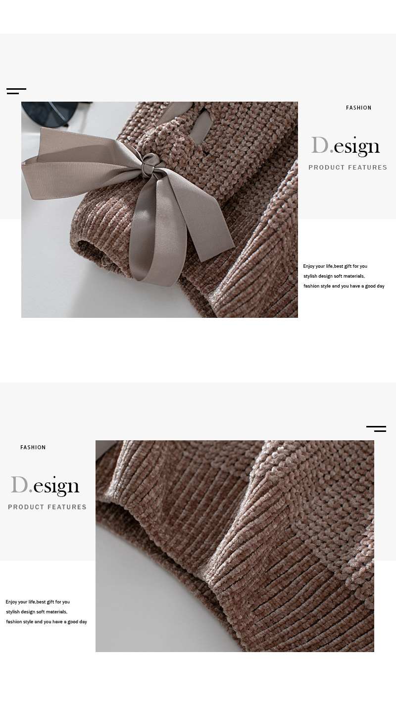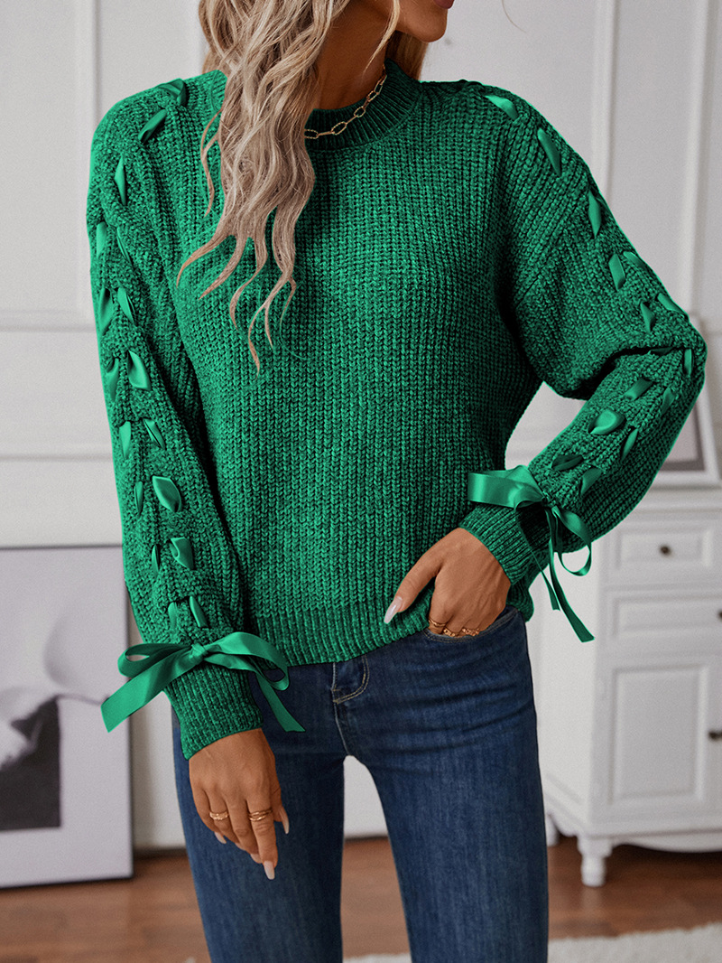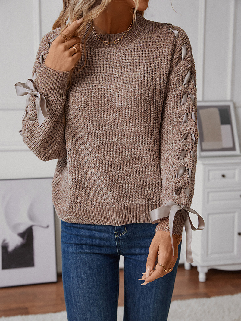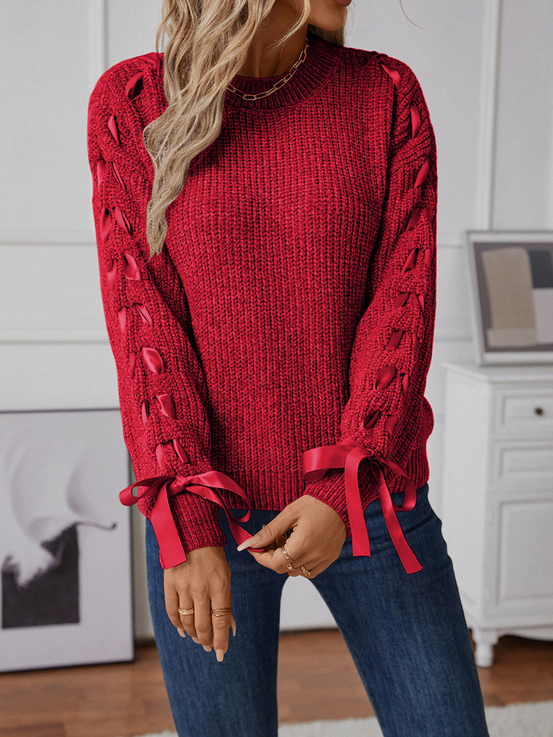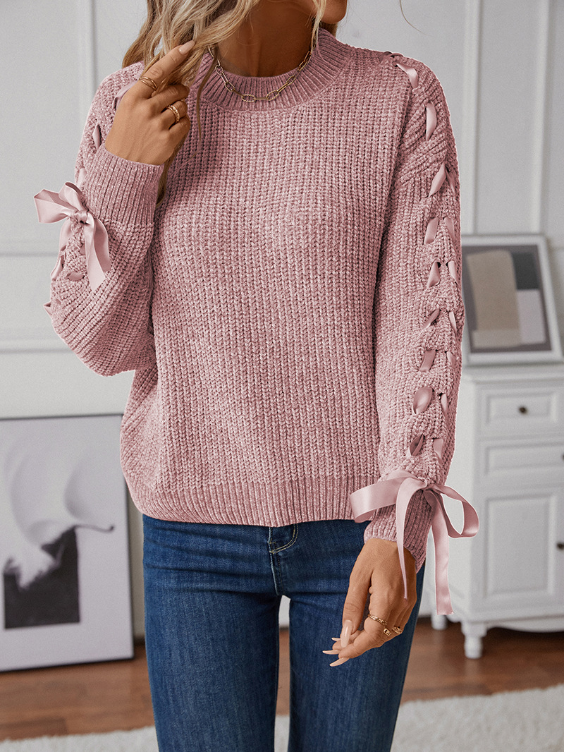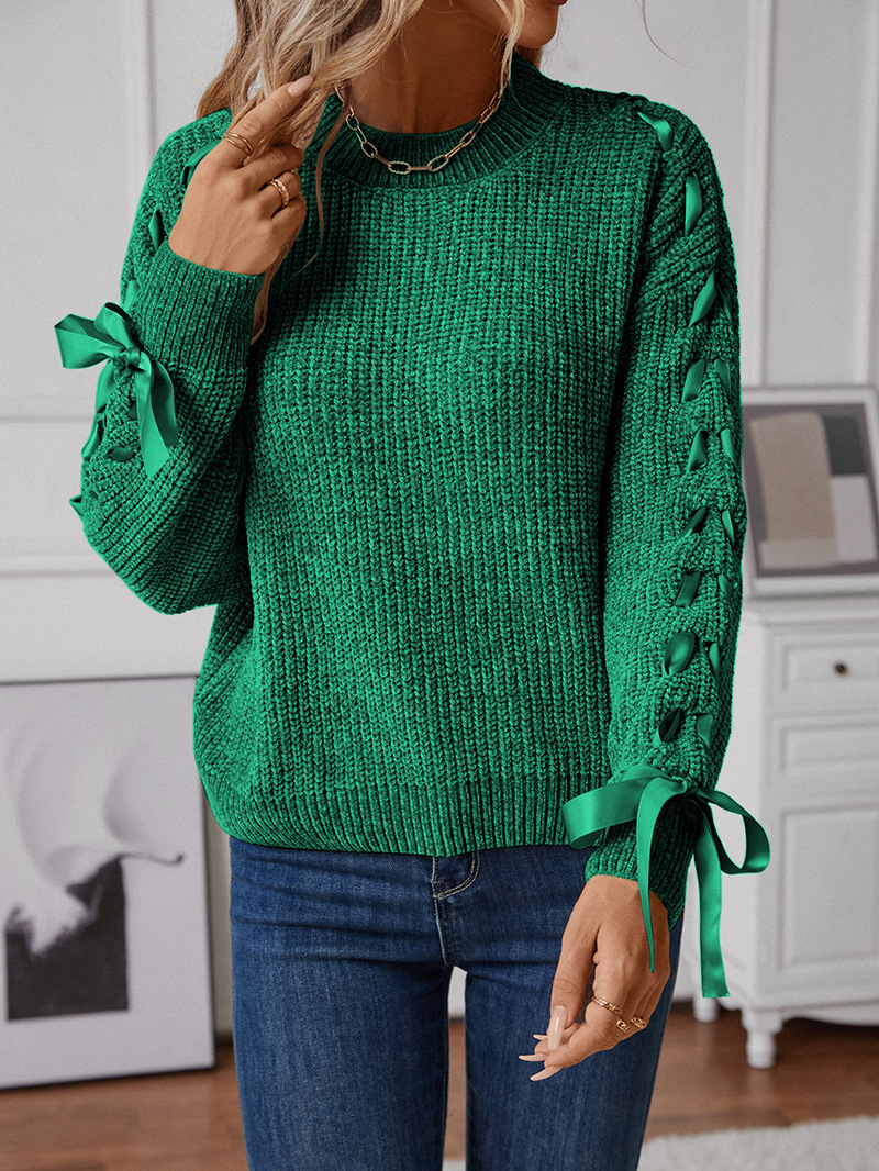 跨境亚马逊系带蝴蝶结套头秋冬毛衣宽松休闲长袖针织衫欧美女装