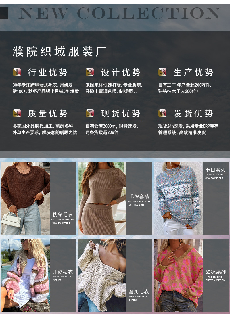 跨境亚马逊秋冬新款加厚泡泡纱混色针织套头衫V领长袖通勤毛衣女