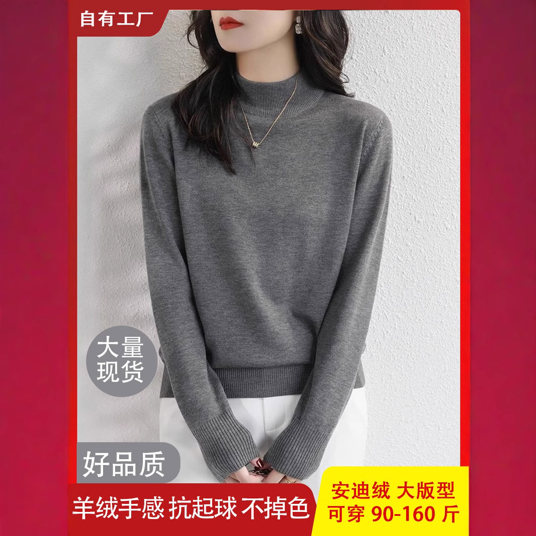 アンディの毛の半高襟の秋冬の大きいサイズの太っているMMのメリヤスの底のセーターの女性の長袖の百合のゆったりしている中襟の上着