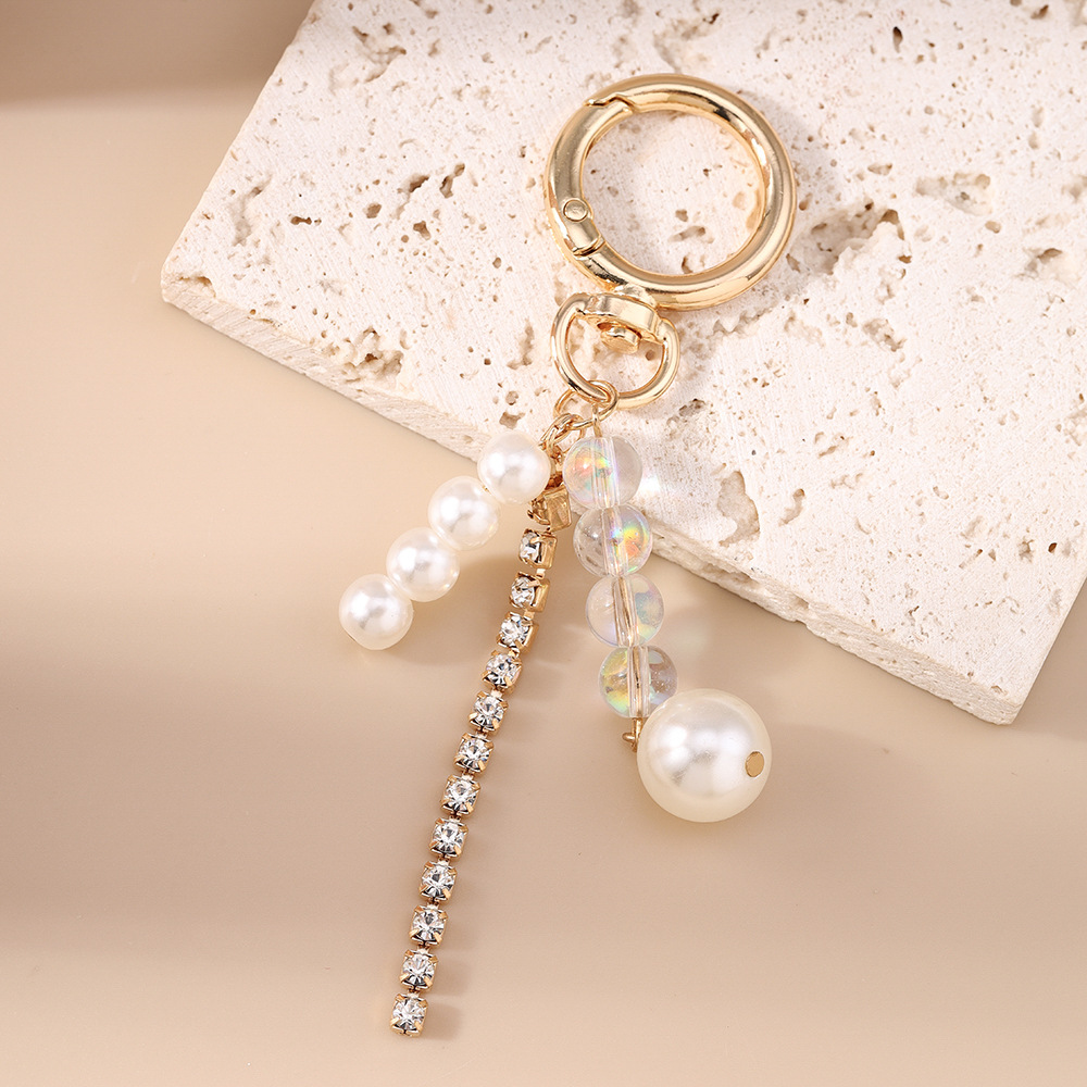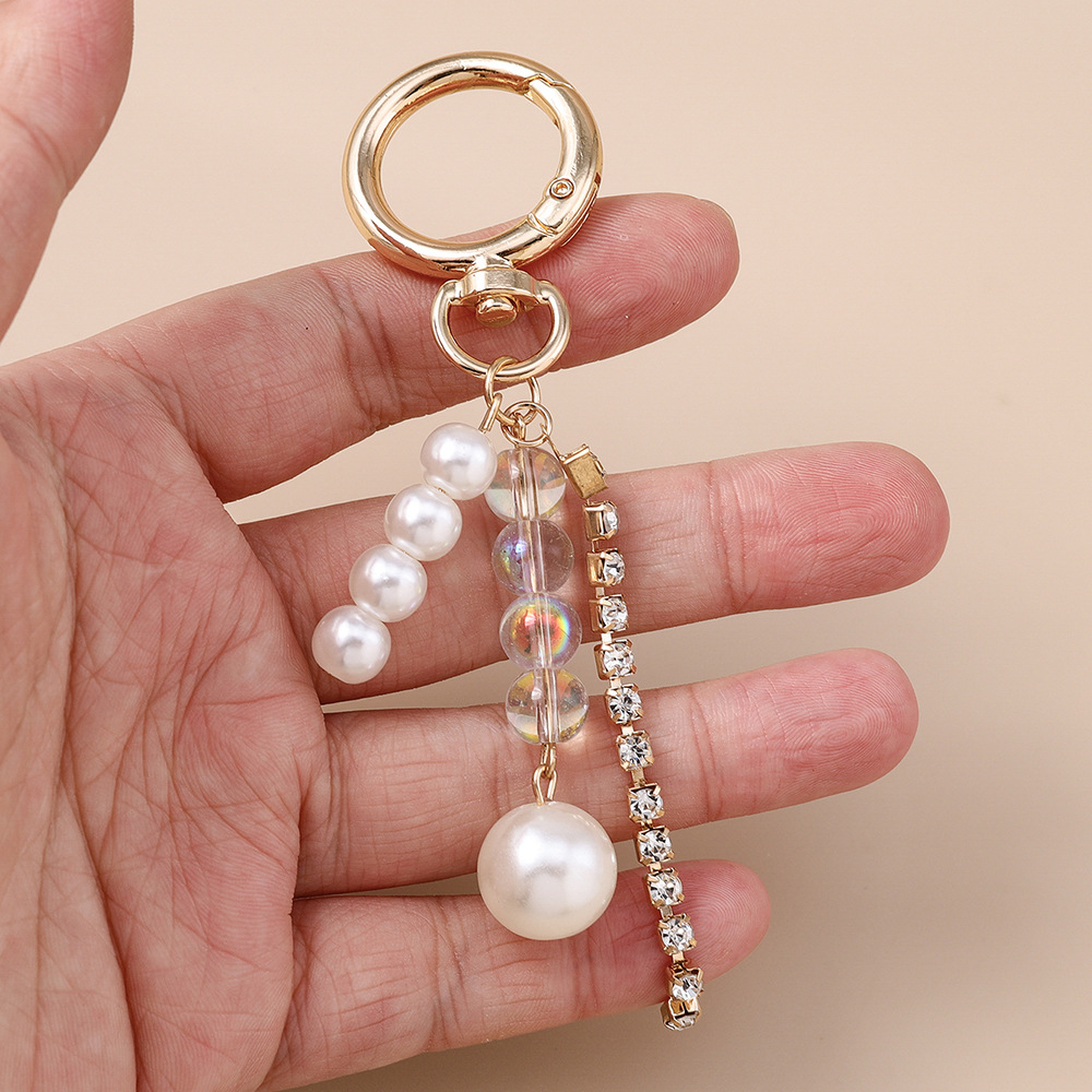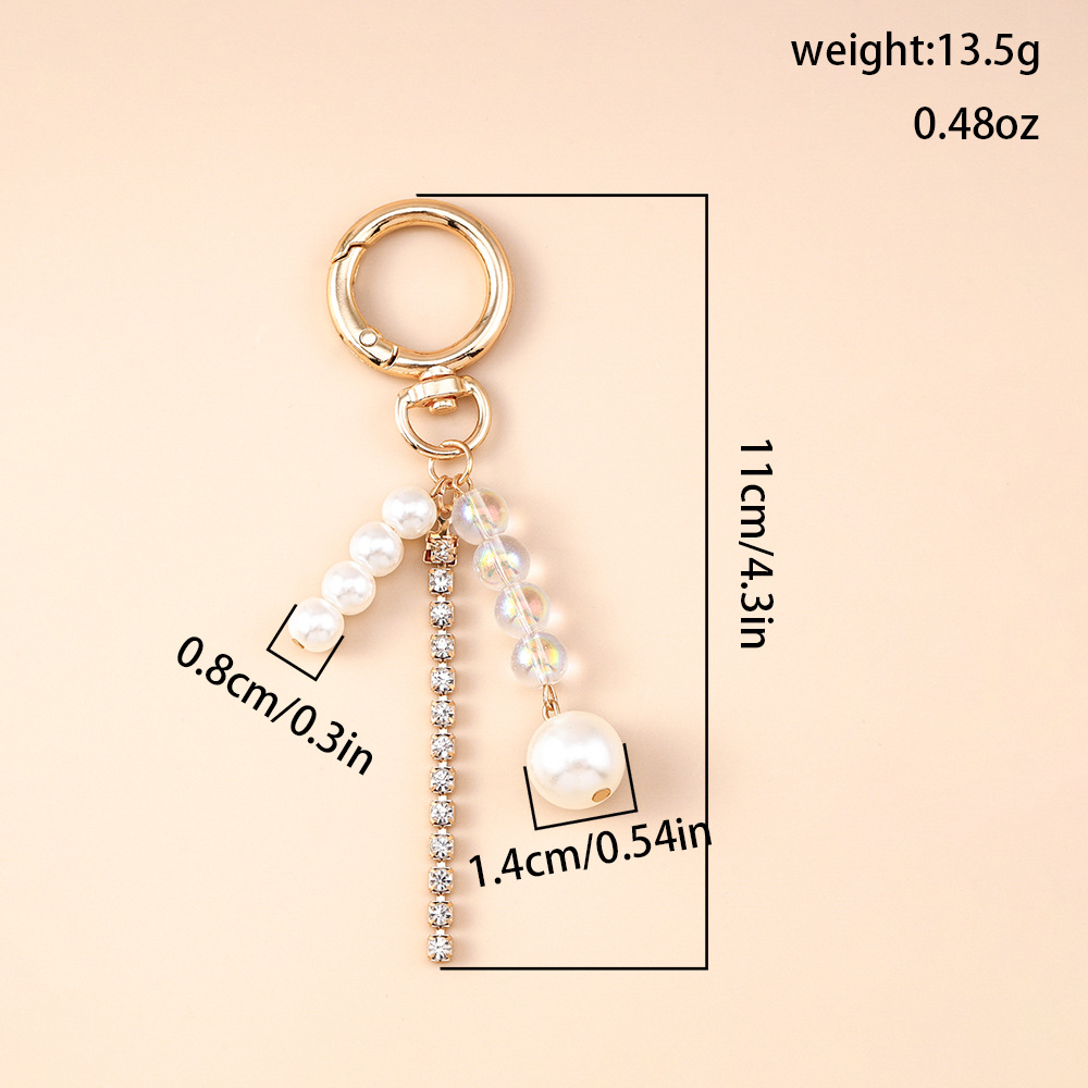 高级贝壳手机链仿珍珠水钻钥匙扣女士挂饰潮流气质珠子钥匙环挂件